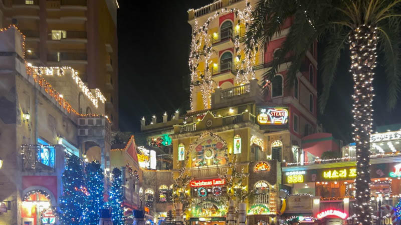 昼間はカラフルで楽しい雰囲気を演出し、夜には美しいライトアップが施され、とても魅了されました。