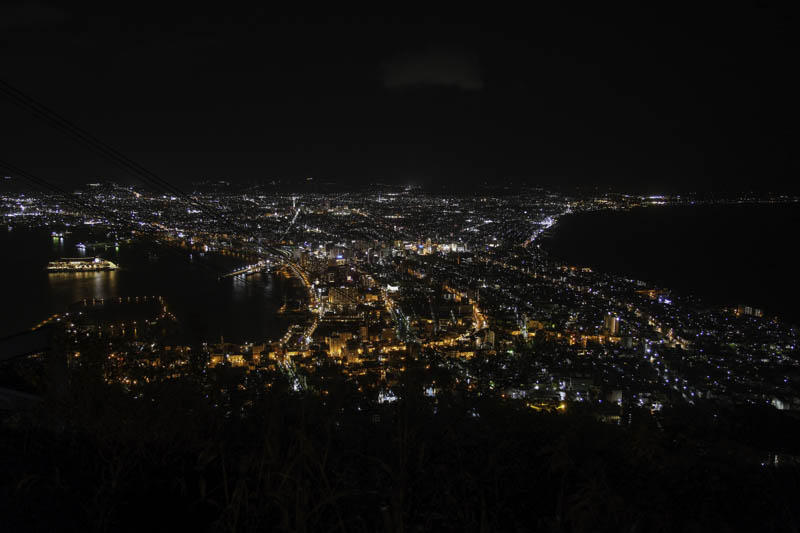雨が小降りになっていたことと、たまたま通りかかったタクシー運転手さんのご縁に恵まれて、無事に函館山の夜景を拝むことができました。