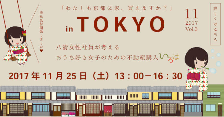 近年、京都では投資用物件への需要が非常に高いのですが、今回の東京セミナーは「京都に住まいを持ちたい」という方に向けたセミナーとなっています。