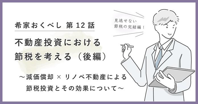 第12話では、減価償却を中古リノベーション不動産に活用しての節税投資とその効果について解説いたします。