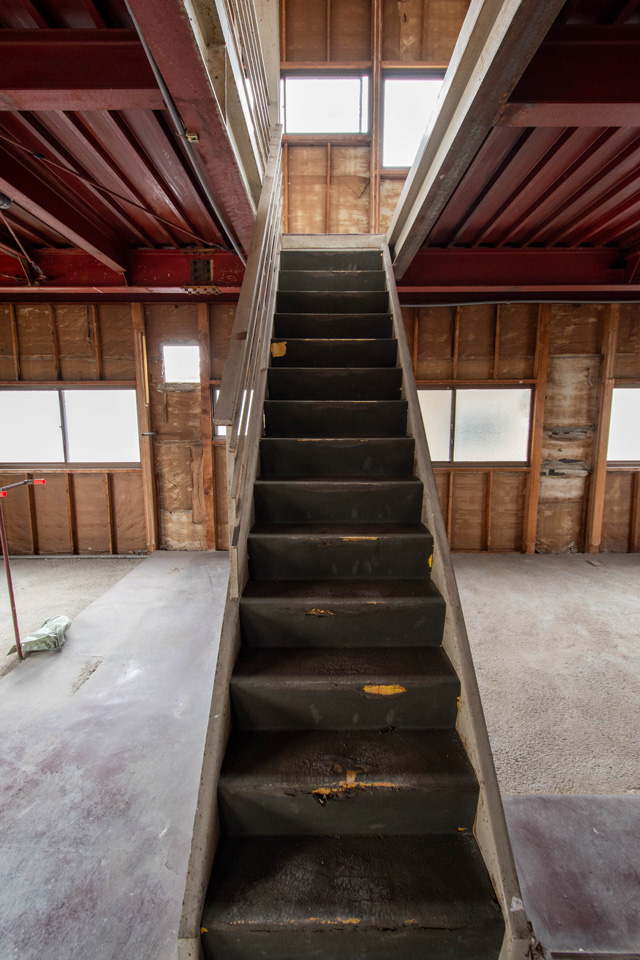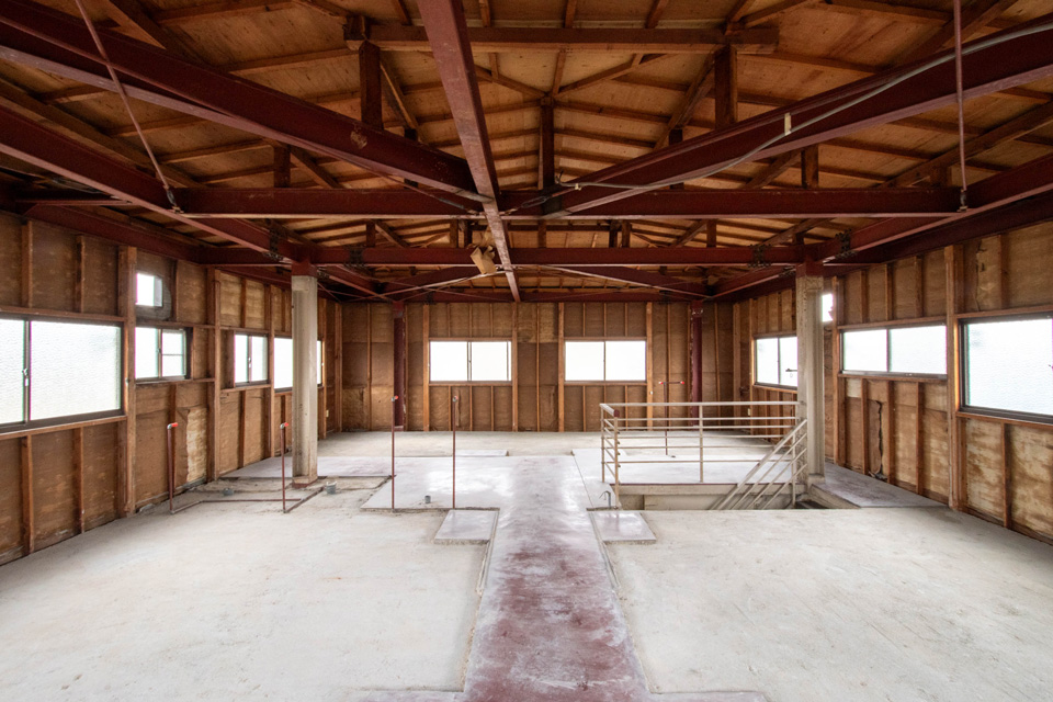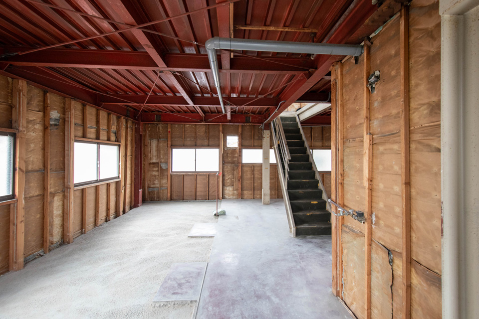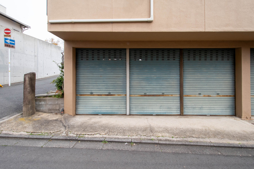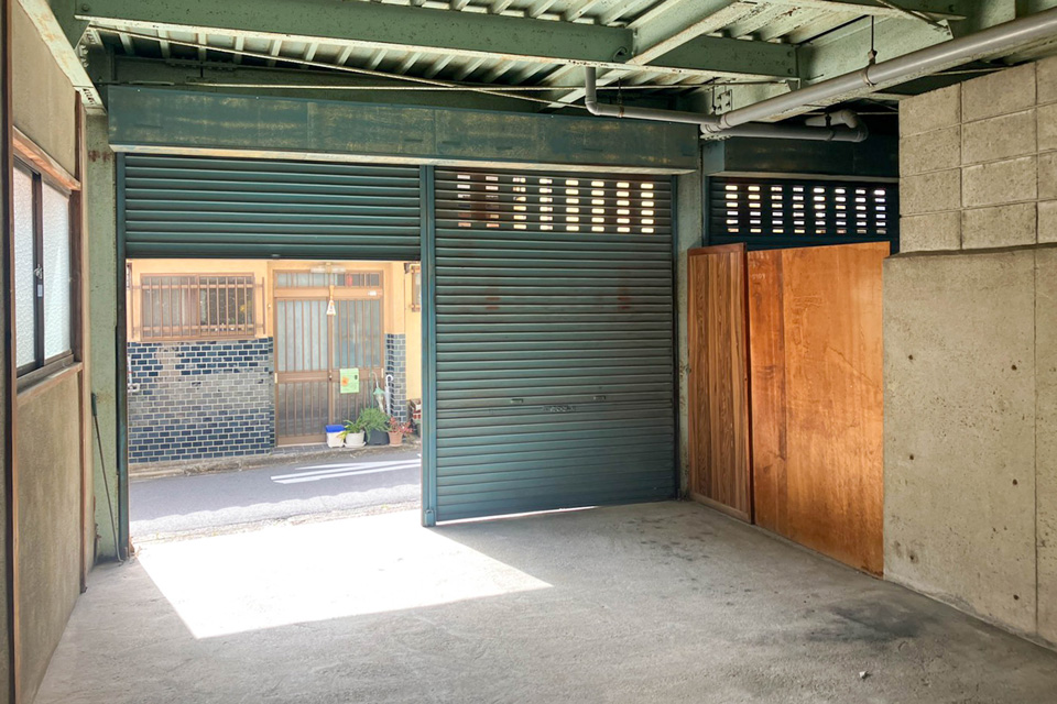 土手の傾斜を利用した形になっており、加茂街道からは2階が入口、1階は西側の道から入る形となっています。スケルトンなので改装しやすい状態です。