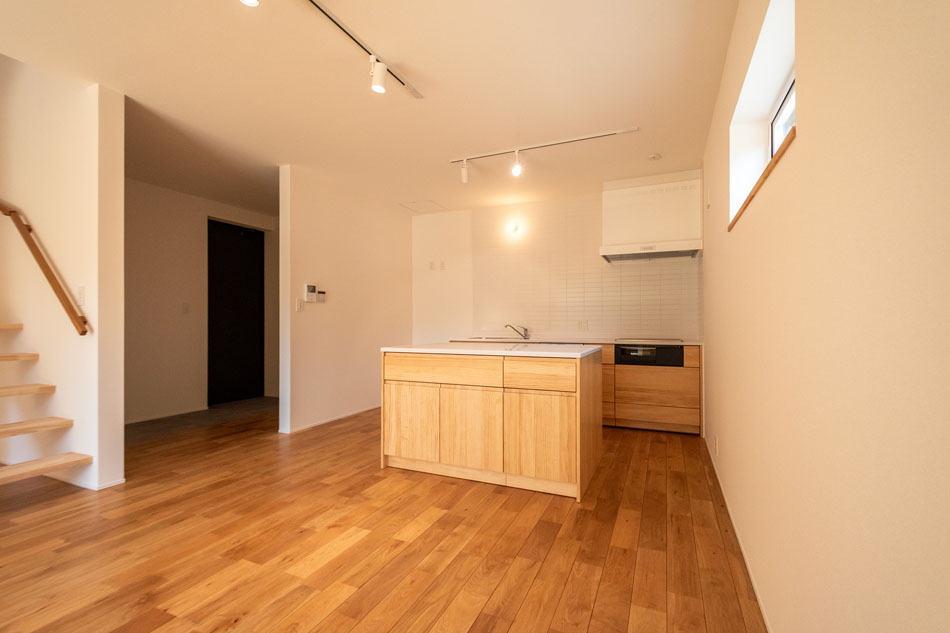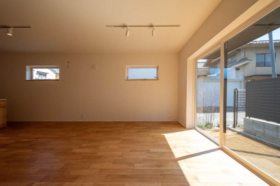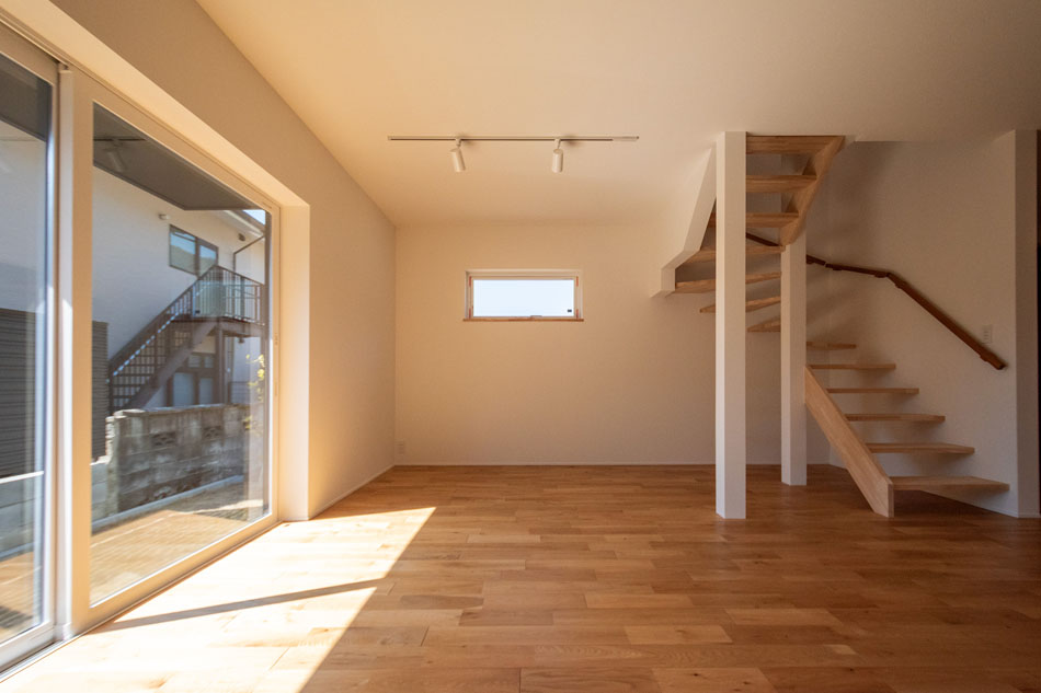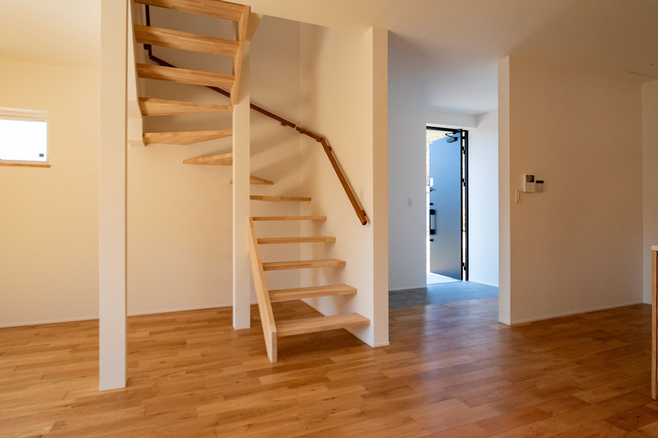 2024年9月完成の一戸建住宅。室内は清潔感あふれる白を基調としたデザインで、光をやわらかく反射し、どんなテイストの家具とも相性の良い空間に仕上がっています。ナチュラルやモダン、北欧風など、お好みのインテリアコーディネートが思いのままに楽しめます。