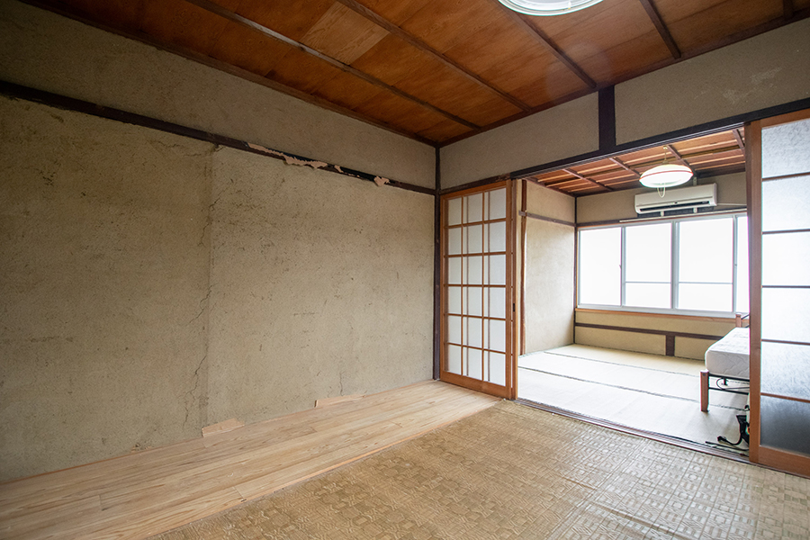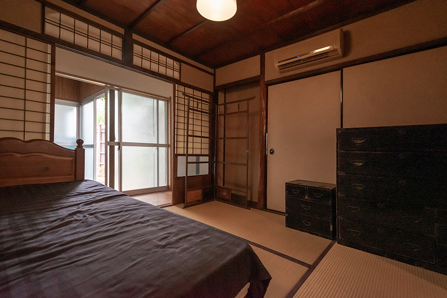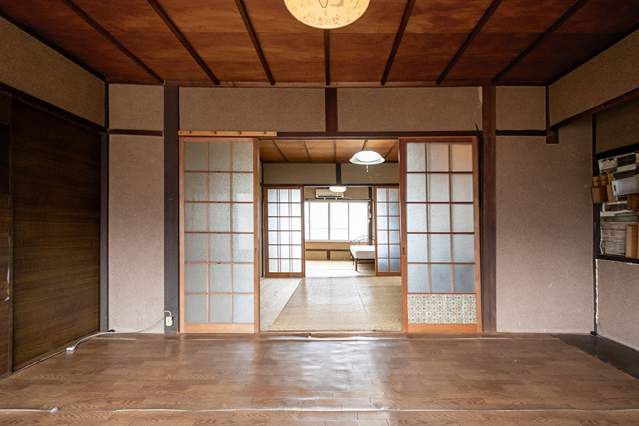 玄関からキッチンを抜け、奥の水回りへとつながる導線は家事や身支度をスムーズにしてくれる実用的な設計。各所に押入が設けられ、収納スペースも充実しています。古き良き日本家屋の構造美を活かしながら、必要な修繕や自分好みのリノベーションを加えることで、理想の空間へと仕上げることができます。