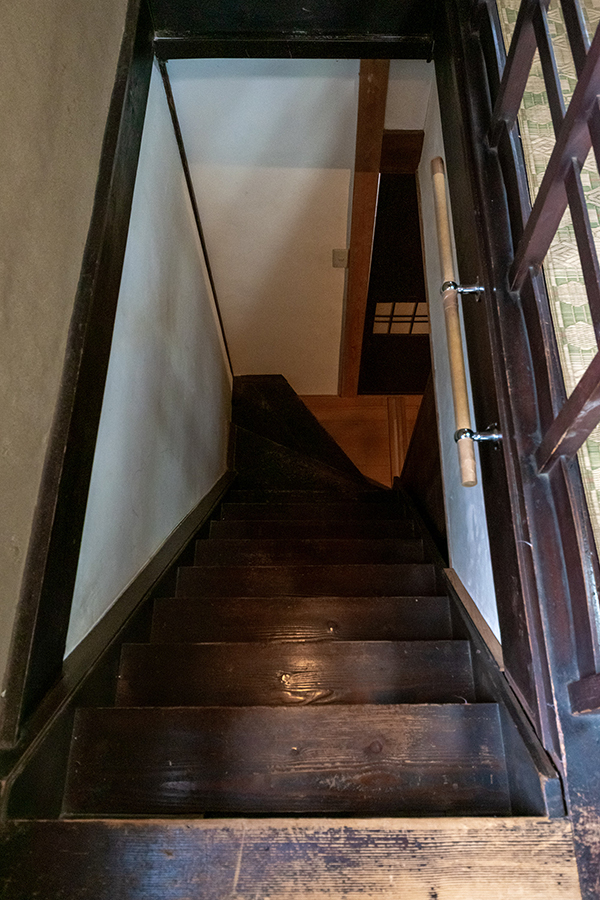 1階には町家では珍しい回り階段が残り、2009年に改装されるまではお米屋として使われていました。
