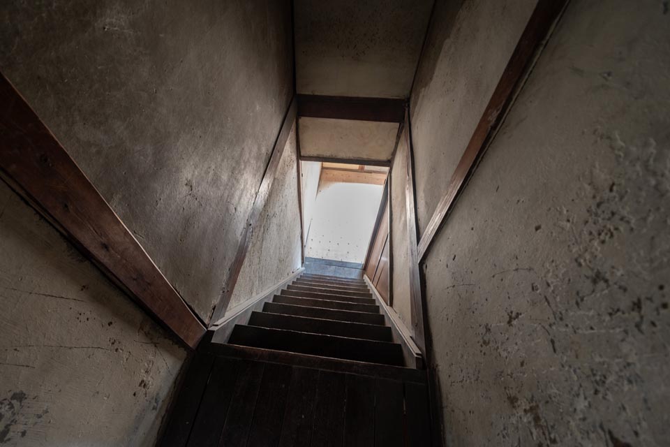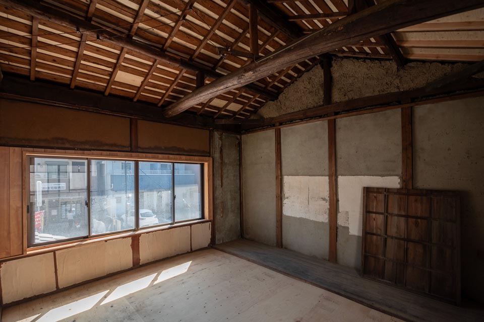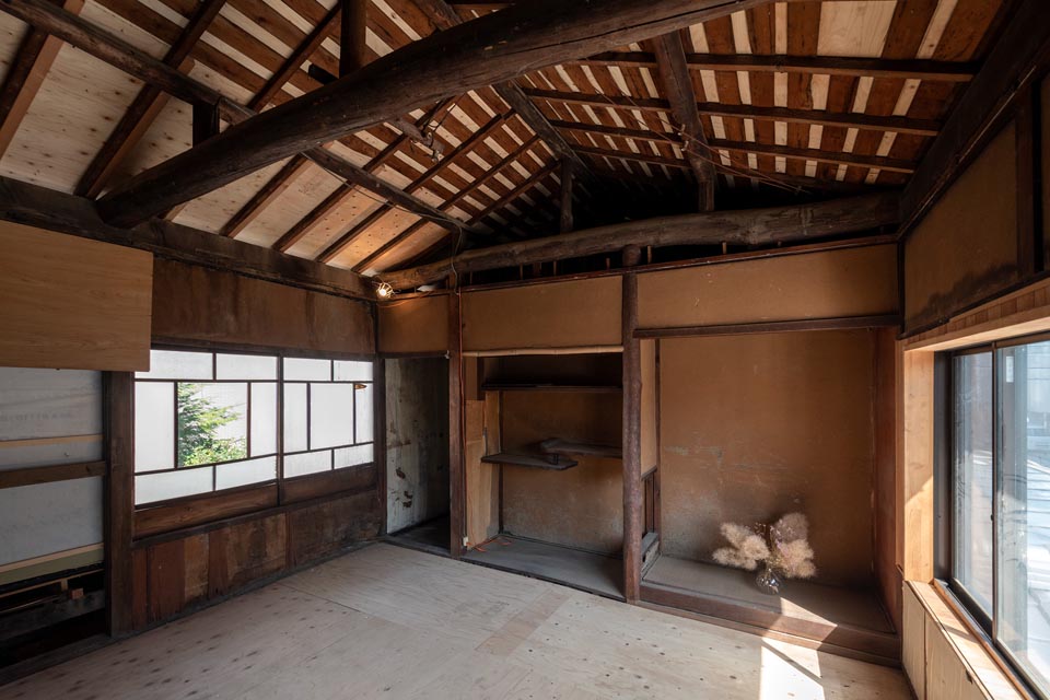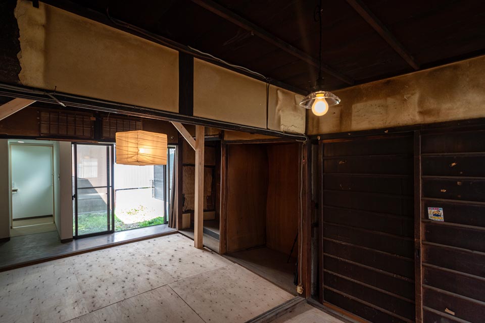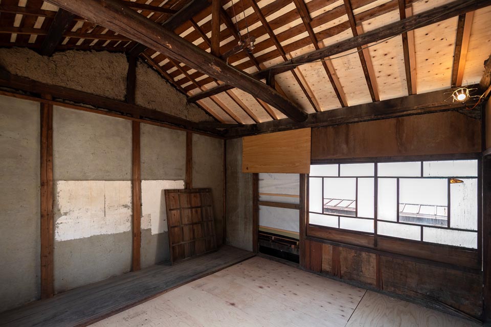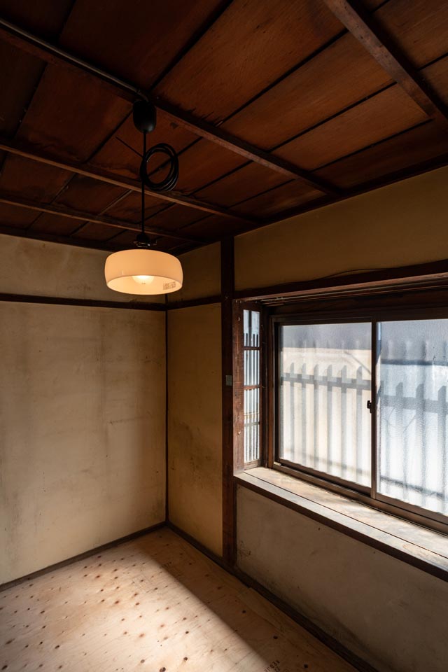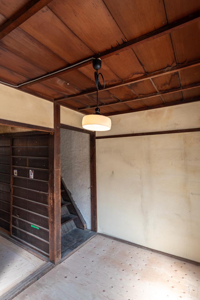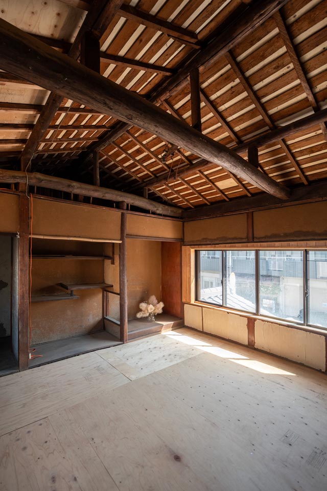 大宮通に面しており、二階は日当たりも良好。天井板を外すと、立派な梁(ゴロンボ)が姿を現し、町家の歴史と風格を感じさせます。この天井高を活かして、ロフト収納を設けるのもおすすめです。
