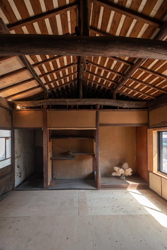 二階には寝室を設け、町家ならではの梁や天井の高さを活かした、心安らぐプライベート空間が広がります。