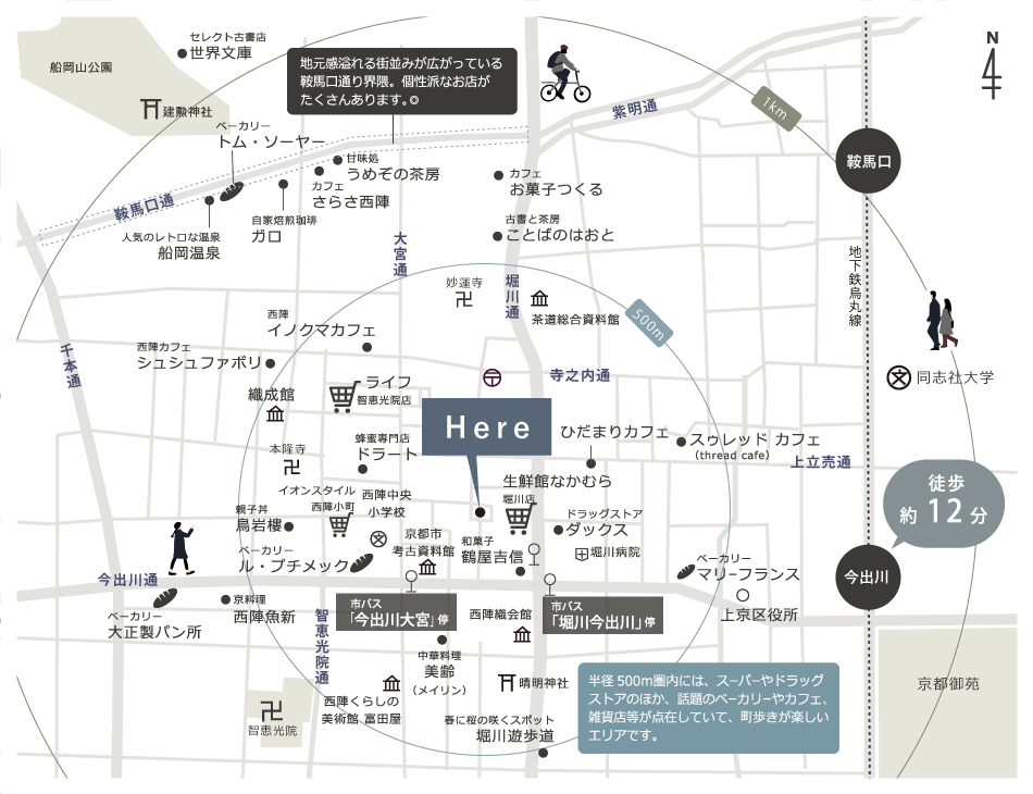 利便性もありつつ、京都の風情を感じる西陣エリア
