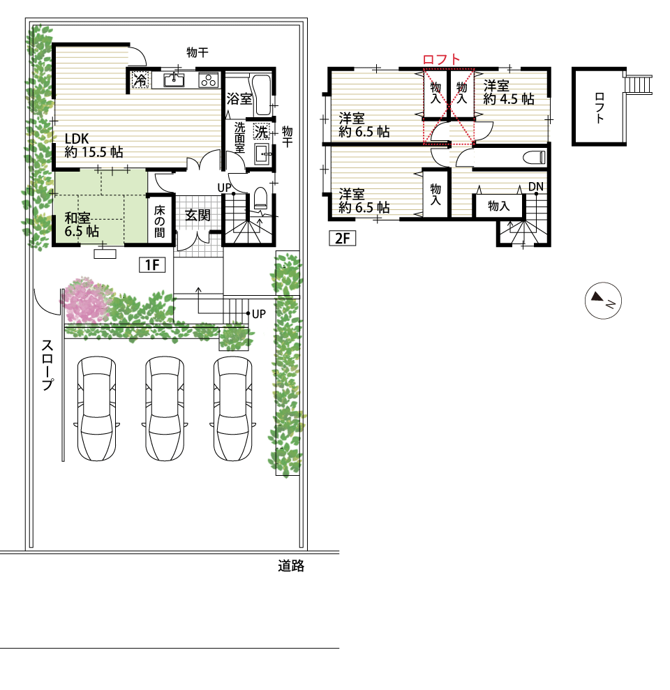 間 取 | 4LDK + 庭 + ロフト + 駐車3台 |
