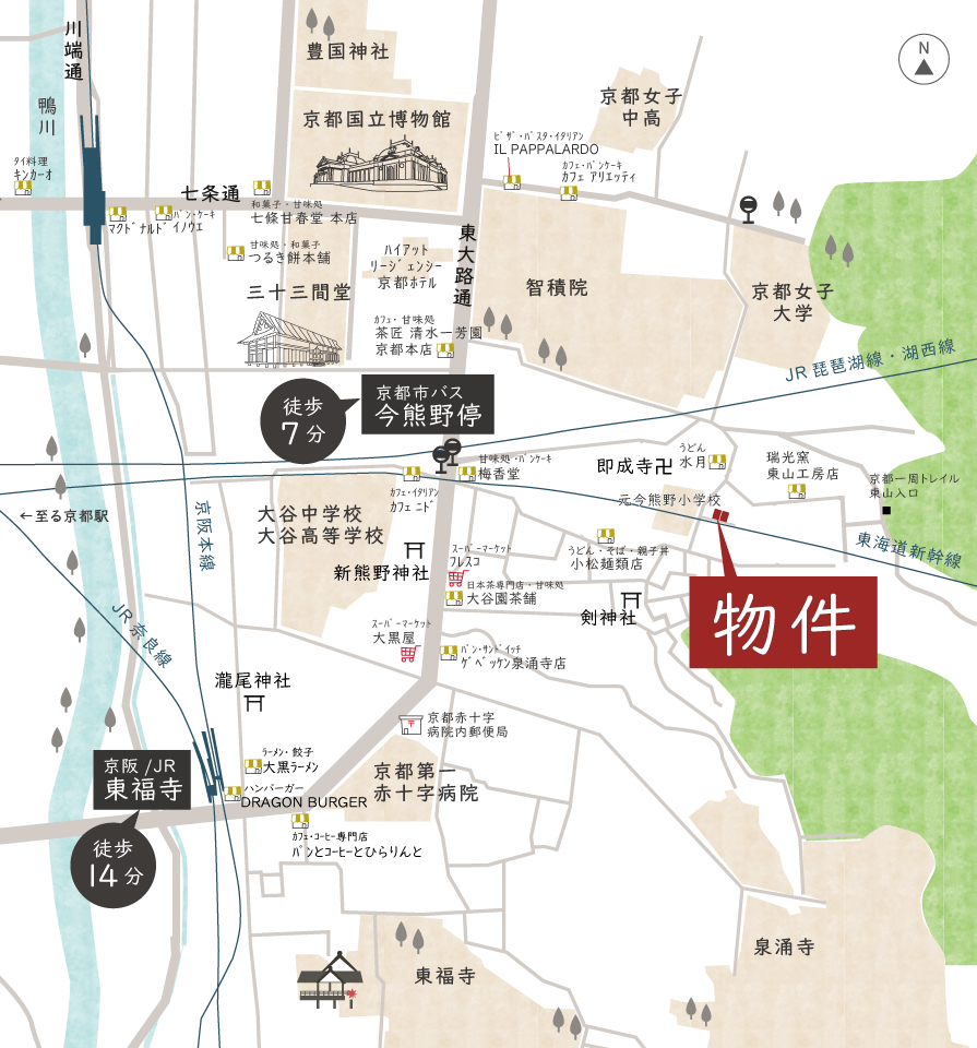 | 京都市バス 今熊野停 徒歩約7分 | |