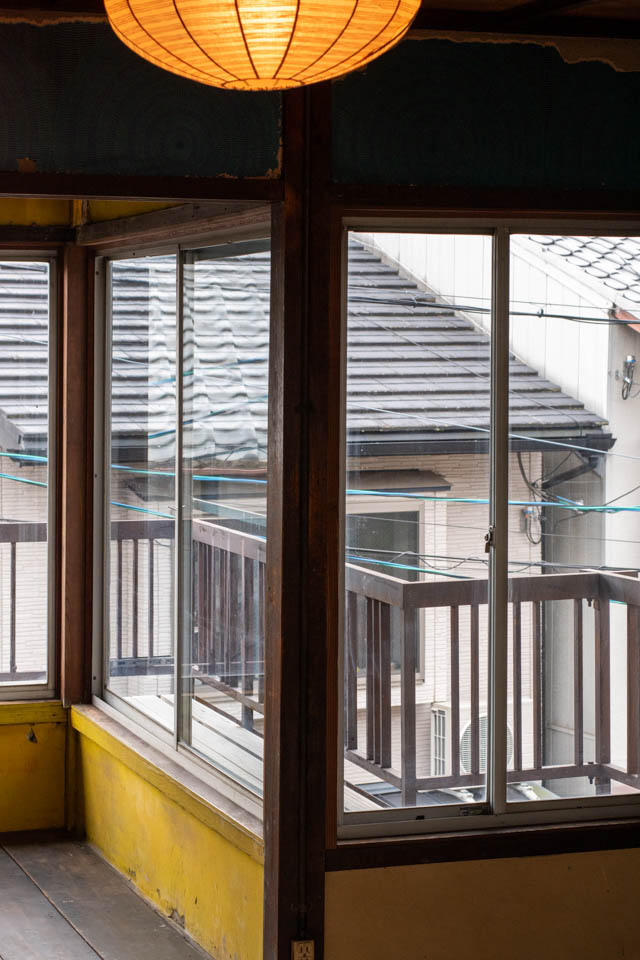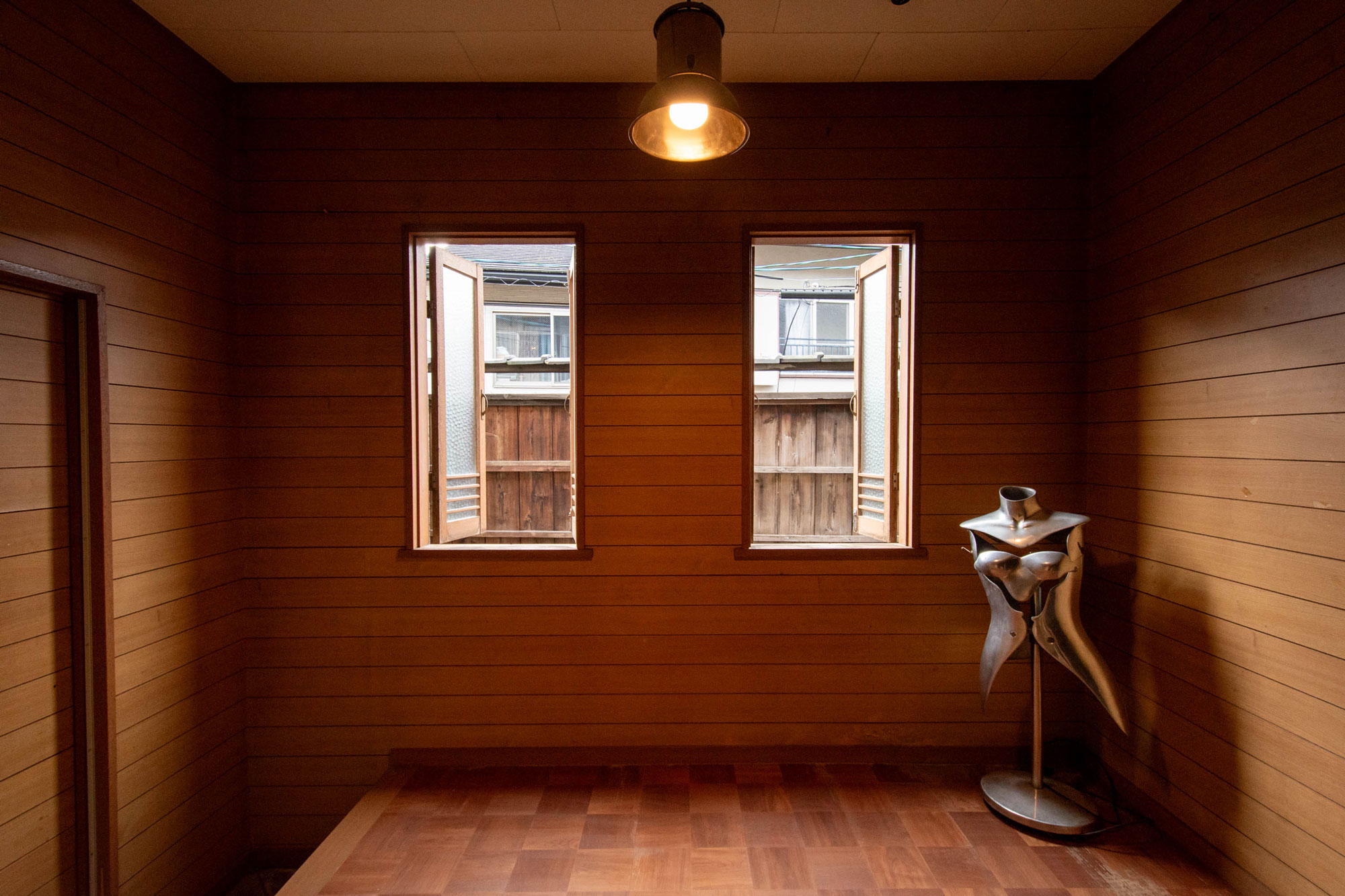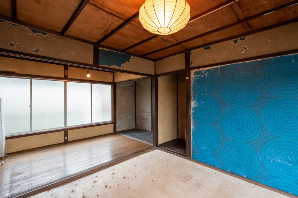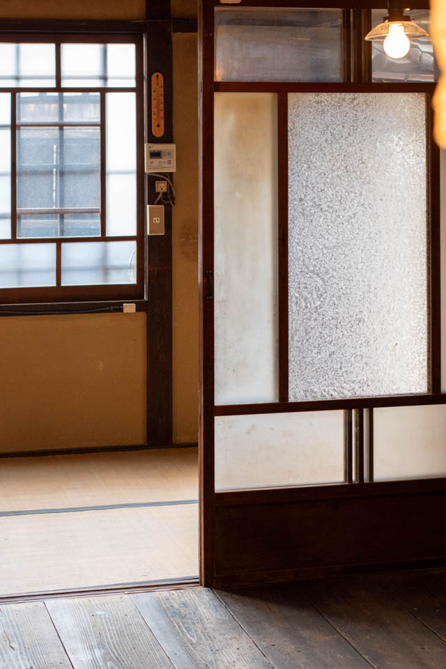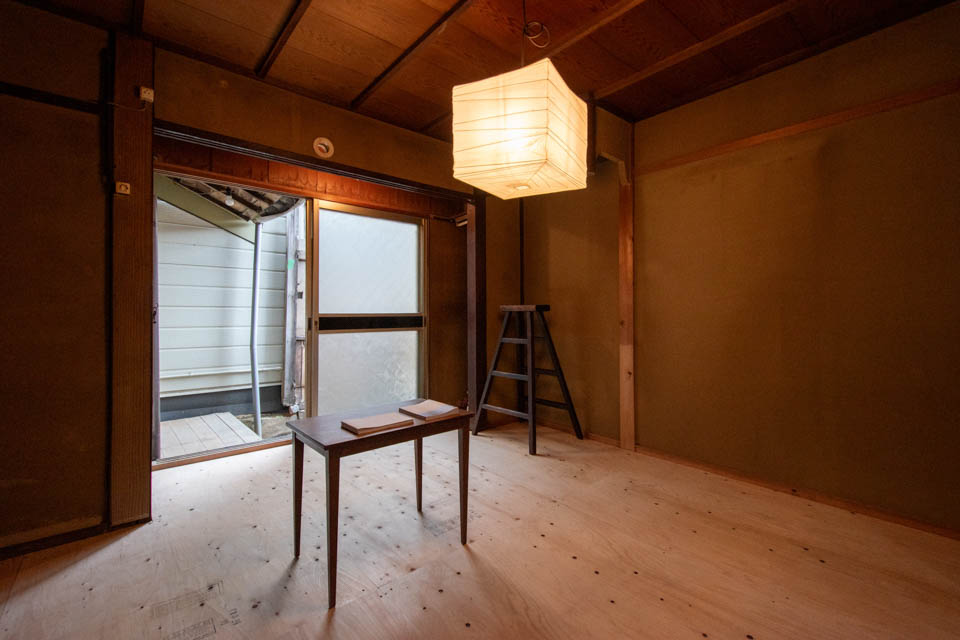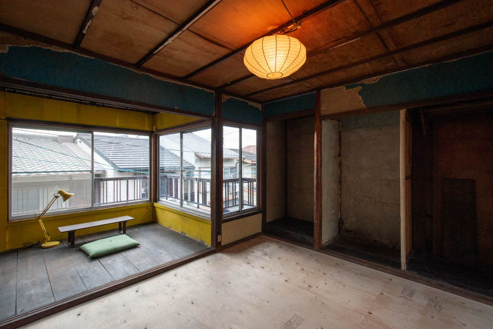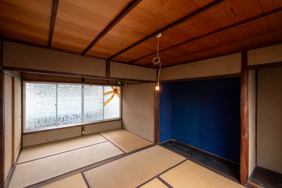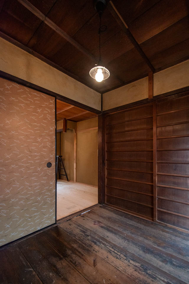 望楼の京町家(東)は対して和の風合いを感じる1軒。長い年月を重ねた木の味わいに、かつての住まい手が残した黄色や青のポップな壁がアクセントとして共存し、暮らしの痕跡と個性が響き合っています。