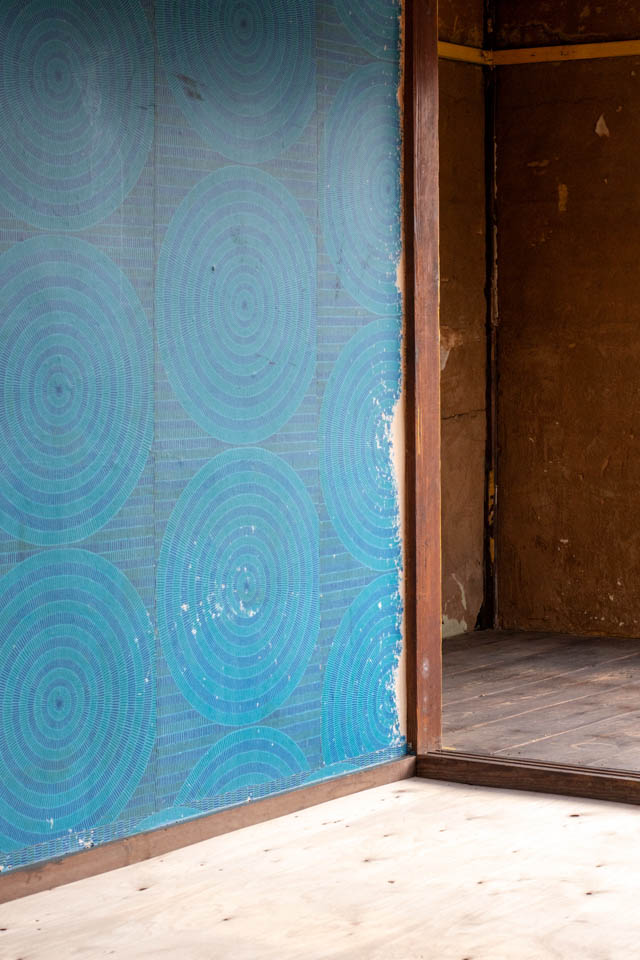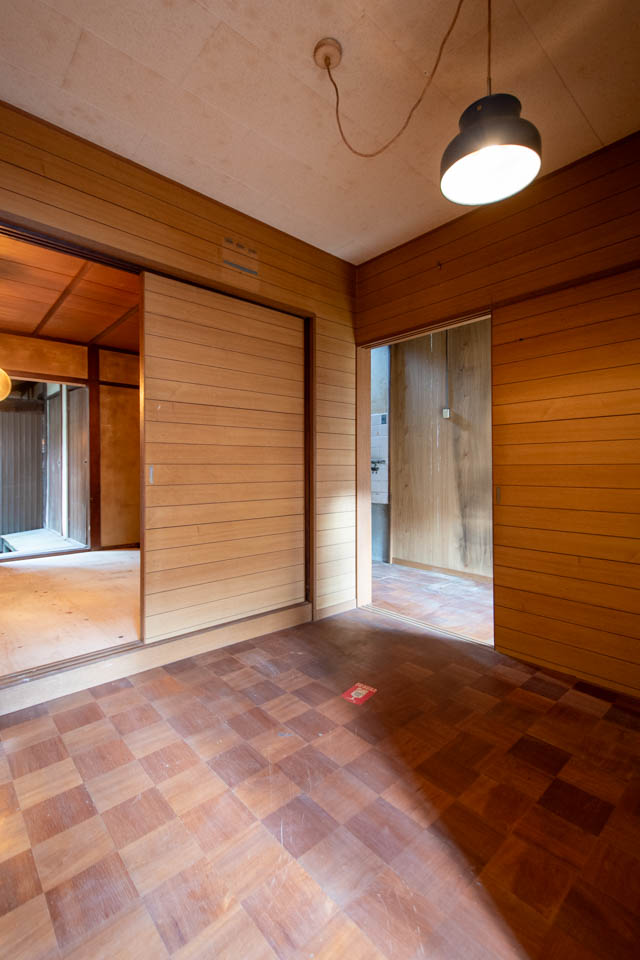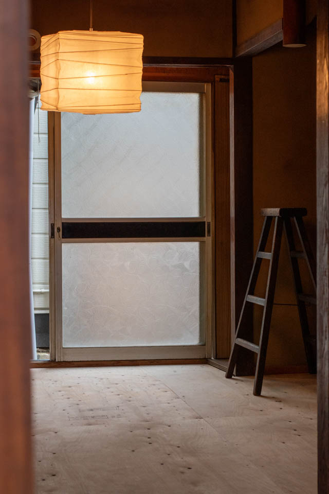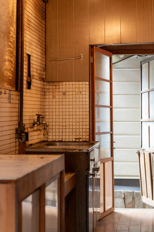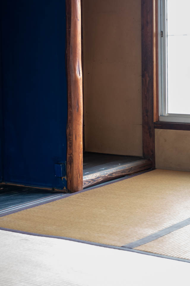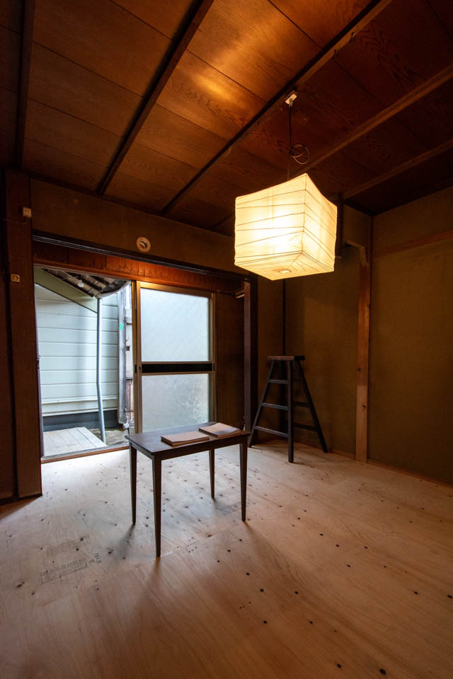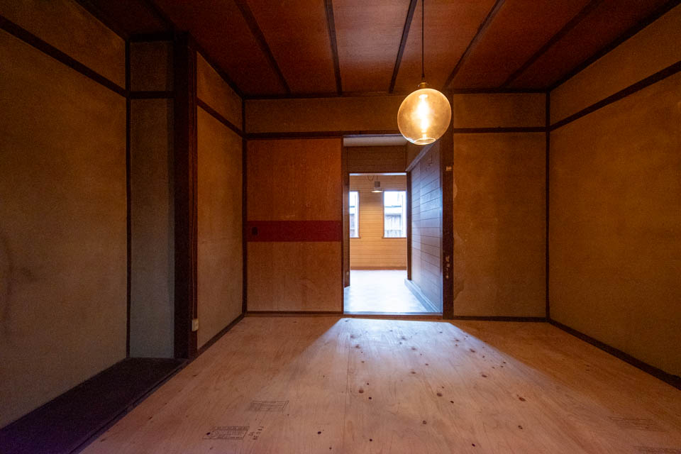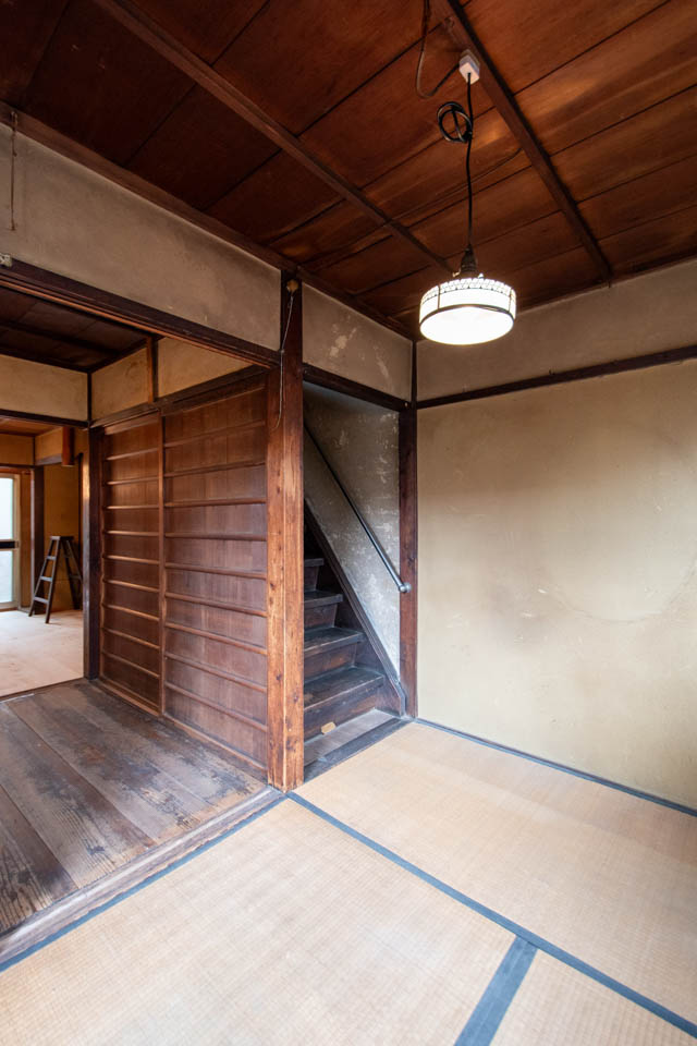 望楼の京町家(東)は対して和の風合いを感じる1軒。長い年月を重ねた木の味わいに、かつての住まい手が残した黄色や青のポップな壁がアクセントとして共存し、暮らしの痕跡と個性が響き合っています。