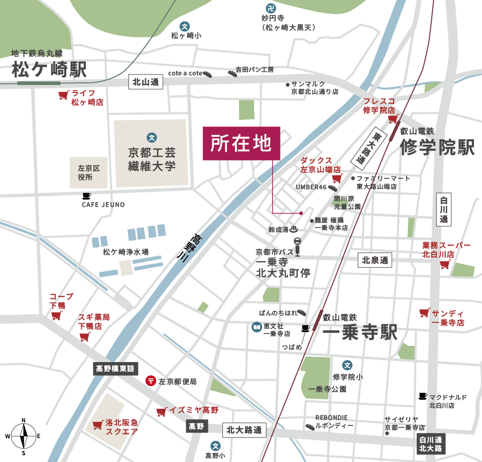 | 交 通 | 京都市バス 一乗寺北大丸町停 徒歩約3分 |
