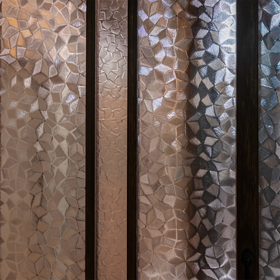 一階の和室6帖からは前庭を望み、ガラス越しに差し込む柔らかな光が空間を包みます。