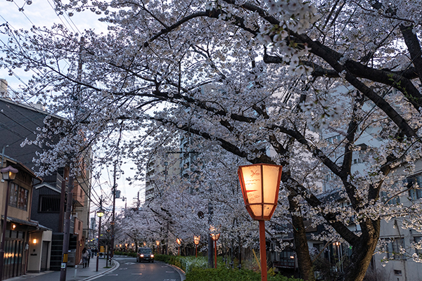 周辺には宿泊施設や飲食店が点在し、高瀬川沿いならではの風情ある景観と、賑わいが調和した魅力的な環境が広がります。