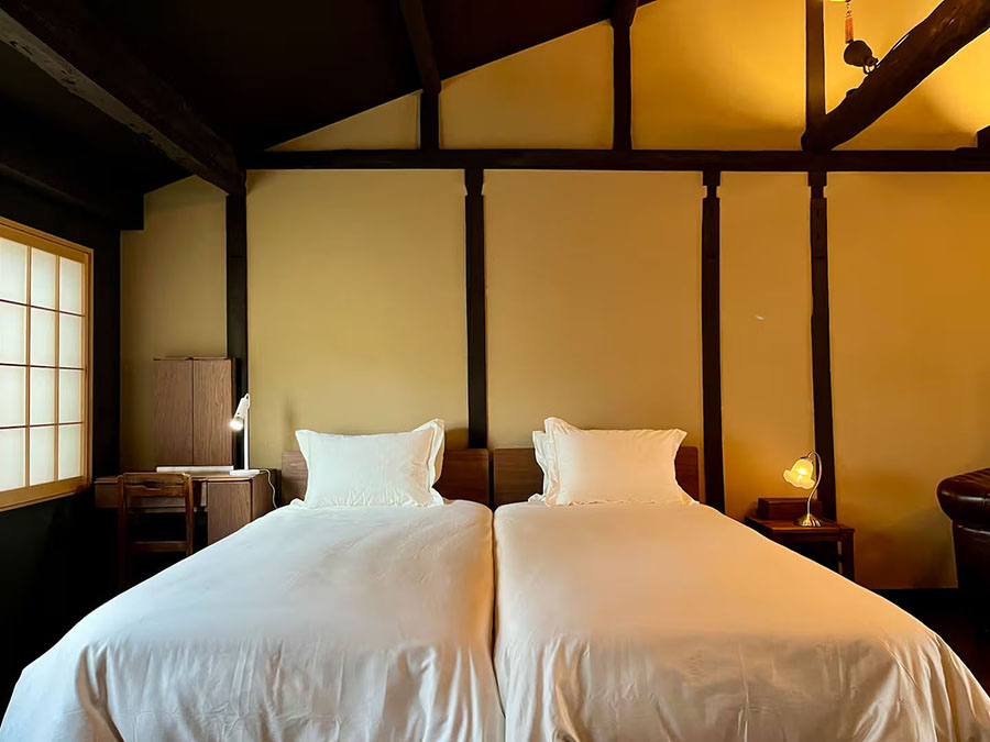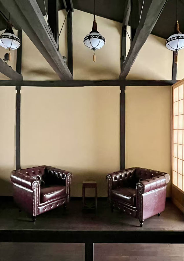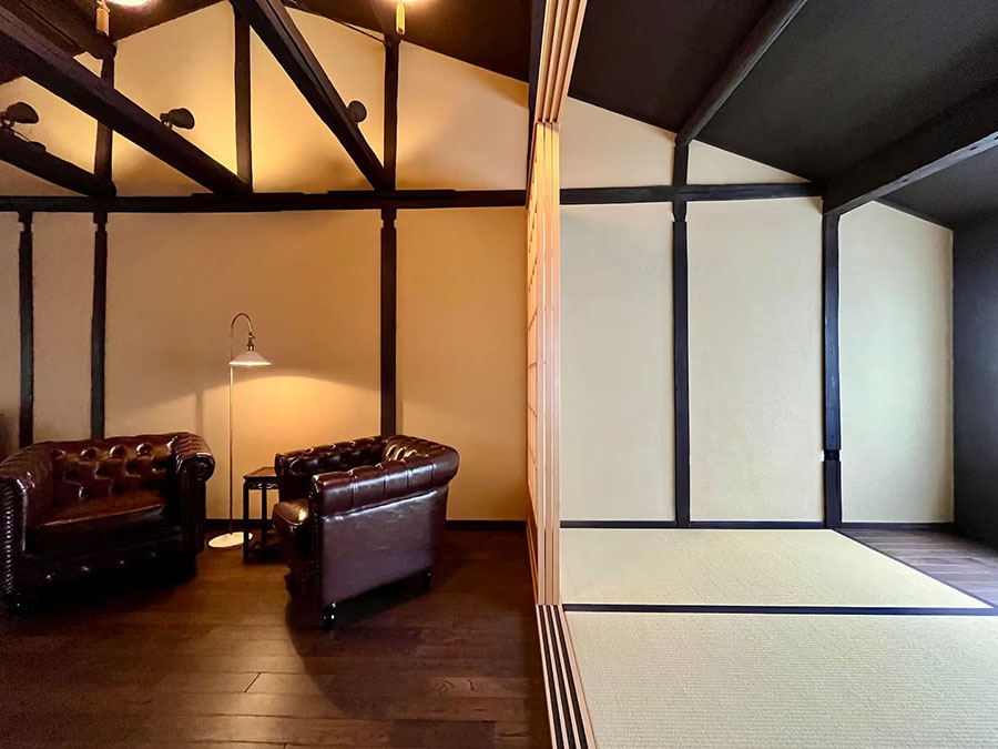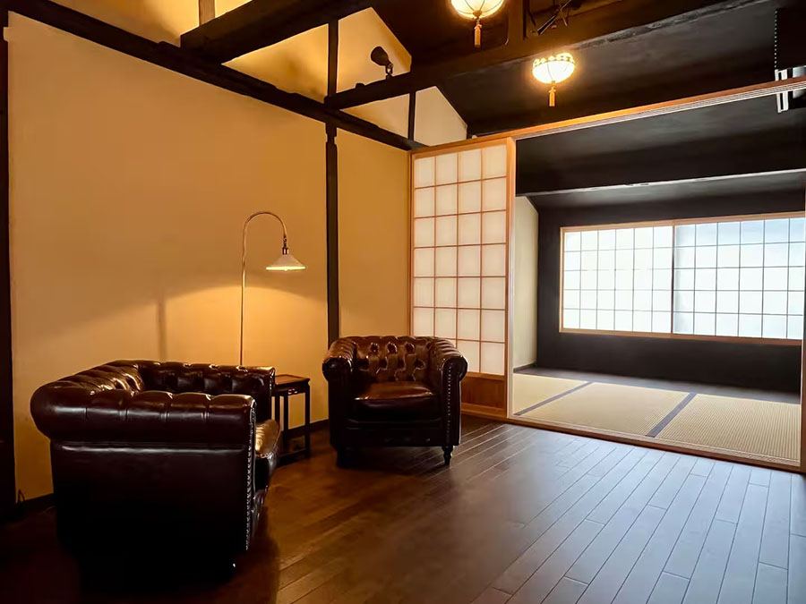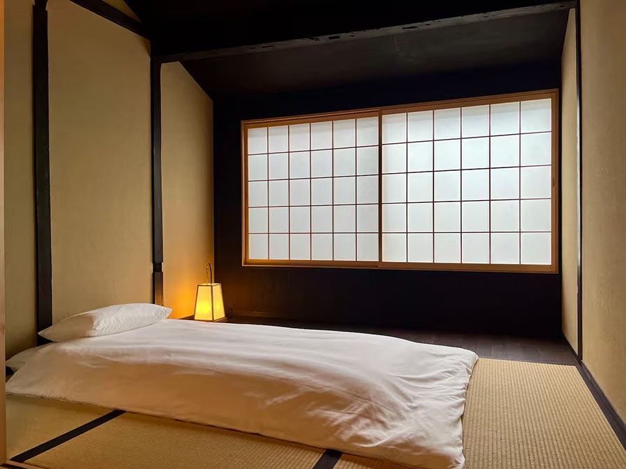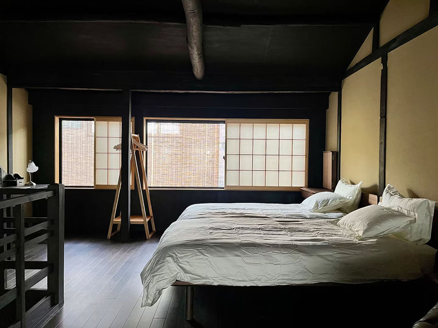 縦に奥行きのある造りと、趣ある格子窓が印象的な外観は、昔ながらの京町家らしさを色濃く残しています。