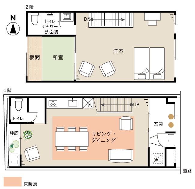 | 建物面積 | 【公簿】1階:47.83m² 2階:41.83m² 延べ:89.66m²(約27.12坪) |