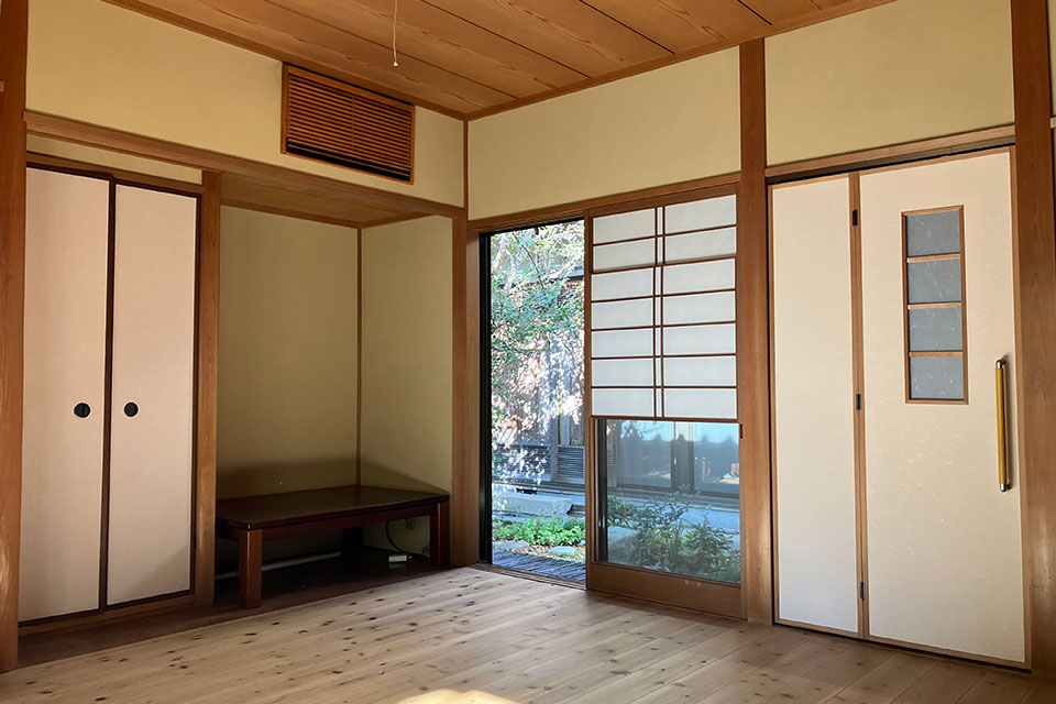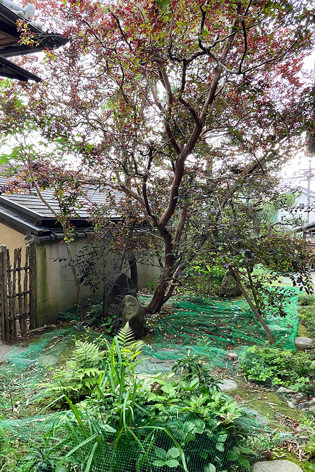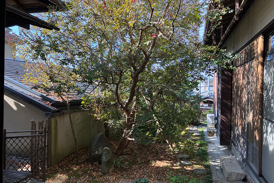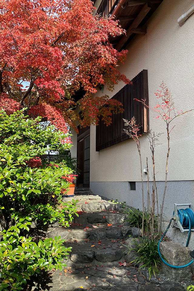 植栽が綺麗に植えられたアプローチは趣があり、部屋の縁側から望むお庭は広く、季節の植物や家庭菜園など、植物や自然の景色を楽しむことができます。