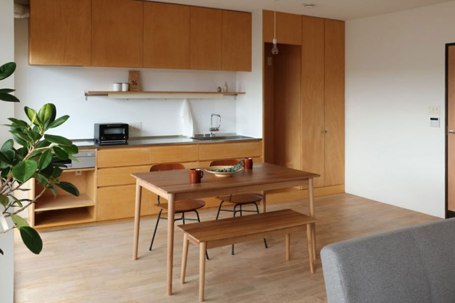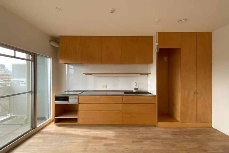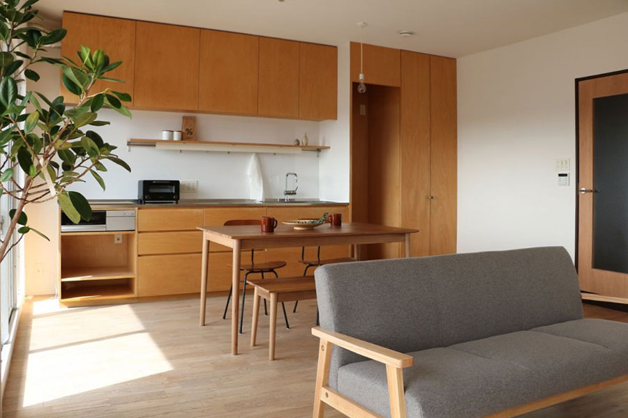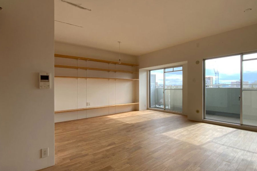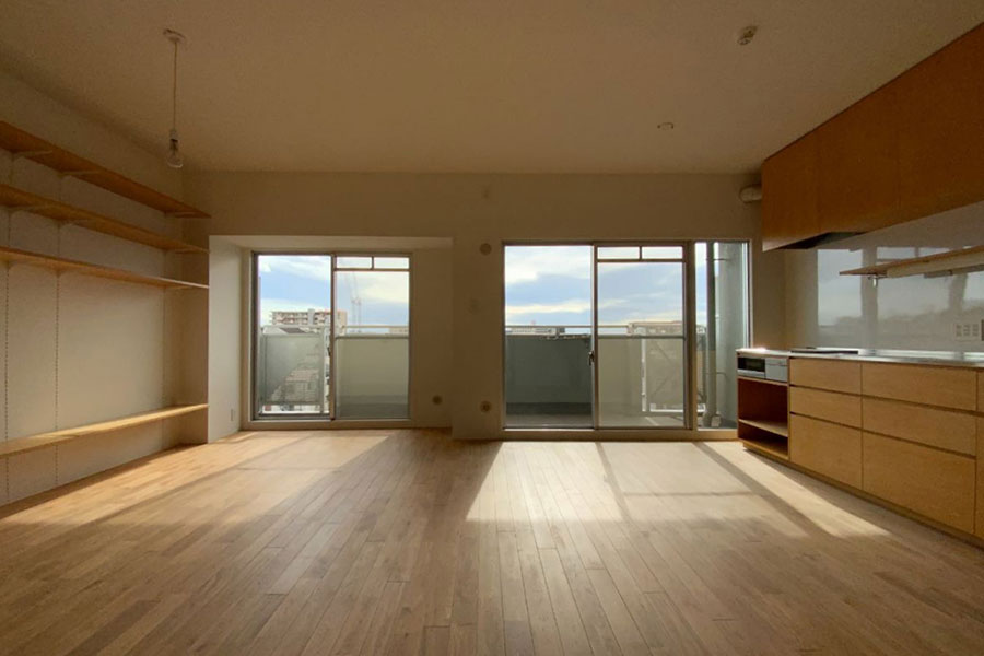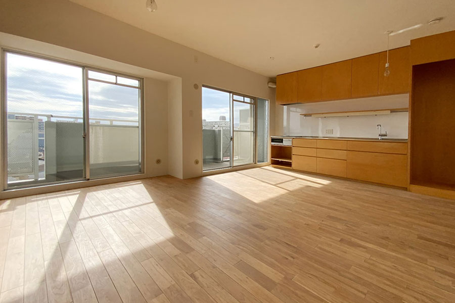 広いLDKと洋室が2部屋。2人なら書斎も作れてゆとりある暮らしが可能ですし、3人になってもちょうどいいサイズ。お部屋は2025年に無垢の木をふんだんに使用しリフォームされました。LDKの大きな窓からは採光をしっかり採り入れることができ、木の温もりを感じながら家族が心地よく過ごせる居場所になりそうです。
