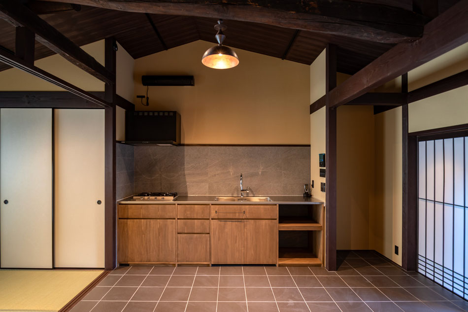 今回の改修で町家の意匠を再現しました。京都の景観に沿った外観を残し、町家の再生と保全に取り組んでいます。