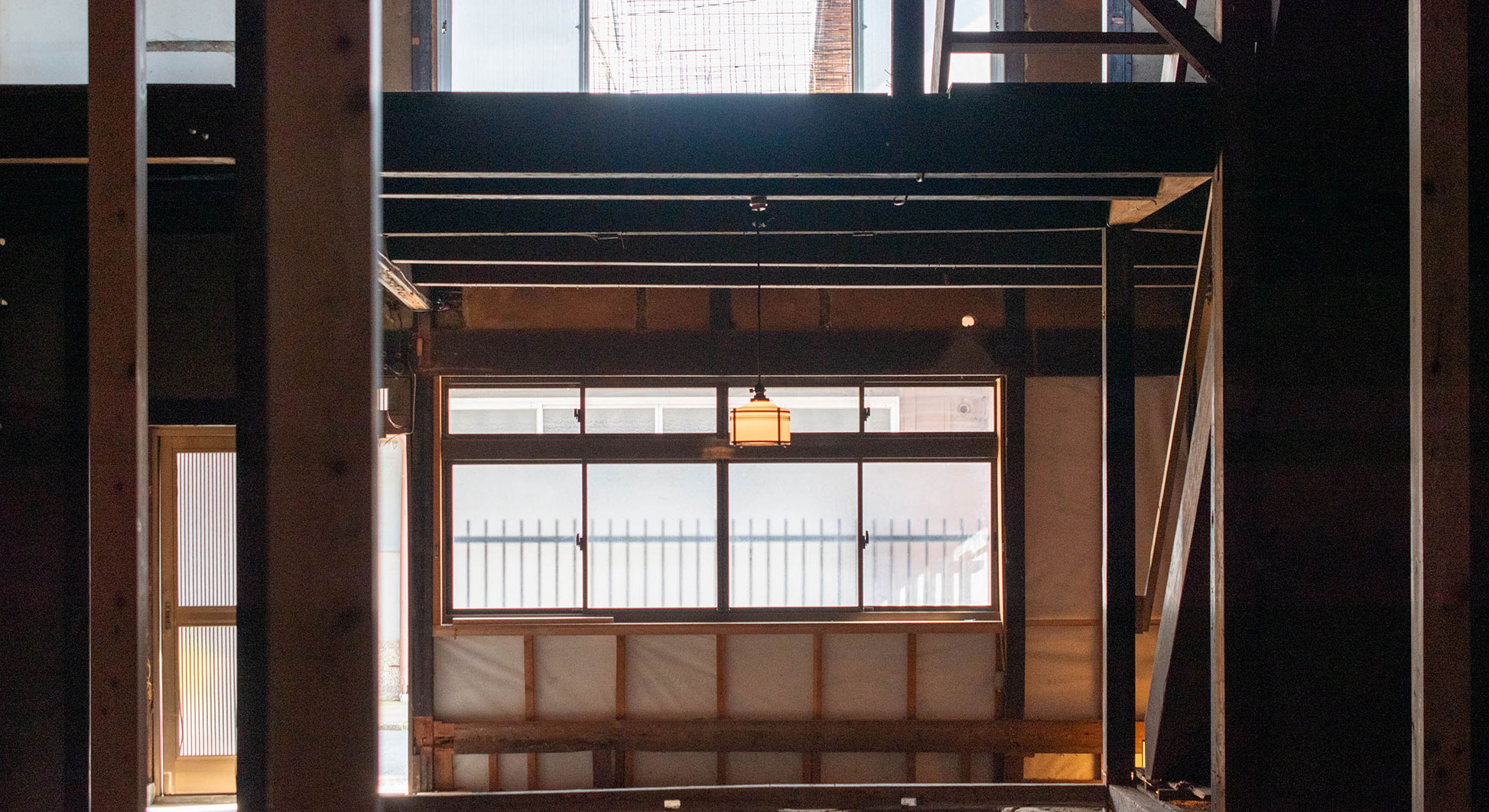 京町家がまだ比較的多く残るまち紫野柏野にある未改装の物件です。外観は修繕して町家らしさを取り戻しました。中はスケルトンながらノスタルジックな雰囲気を随所に感じることができ、今ではなかなか見ることができないラメの入った左官の壁や経年の味わいを醸す木の柱や壁を活かした、唯一無二の改装が楽しめそうです。