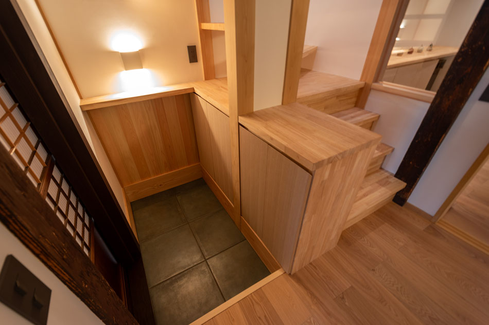 改修計画において大切にしていることは、京町家特有の歴史的・文化的価値の継承と、現代住宅としての快適性を、どちらに偏ることなく両立させることです。伝統的な意匠をまとった外観からは想像できない、現代的で快適な暮らし。その内と外のギャップ、二面性こそが京町家の魅力です。