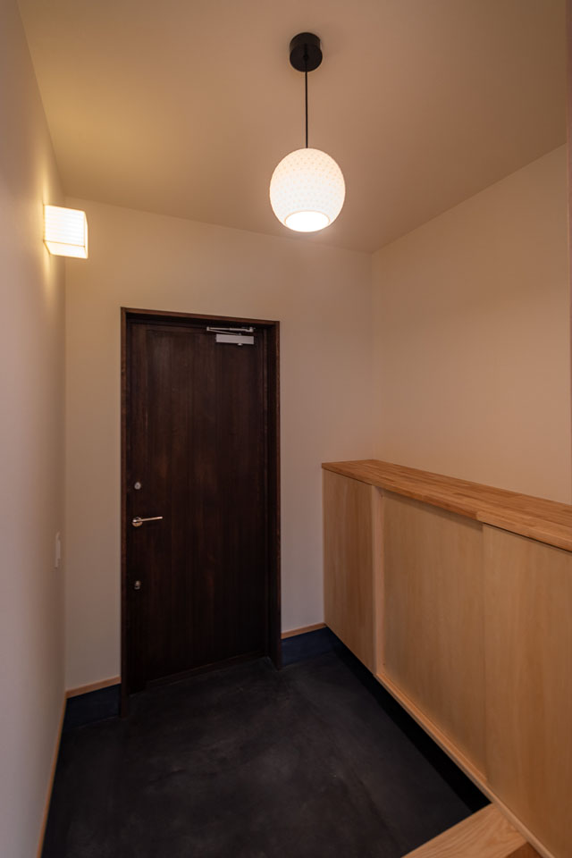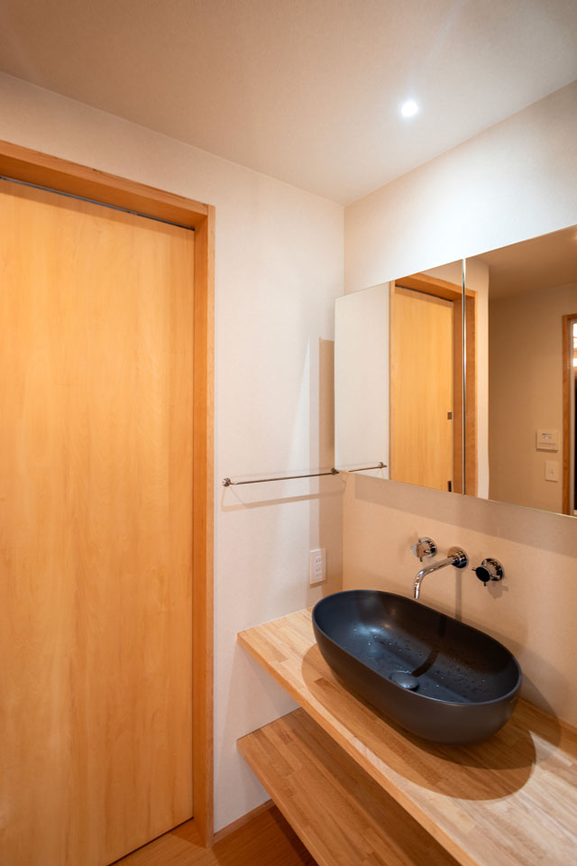 水回り設備は玄関近くにまとめ、生活動線をすっきりと整えることで、日々の使い勝手にも配慮しました。