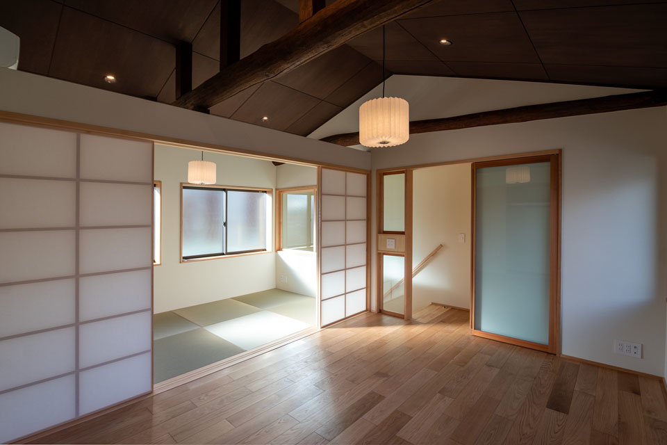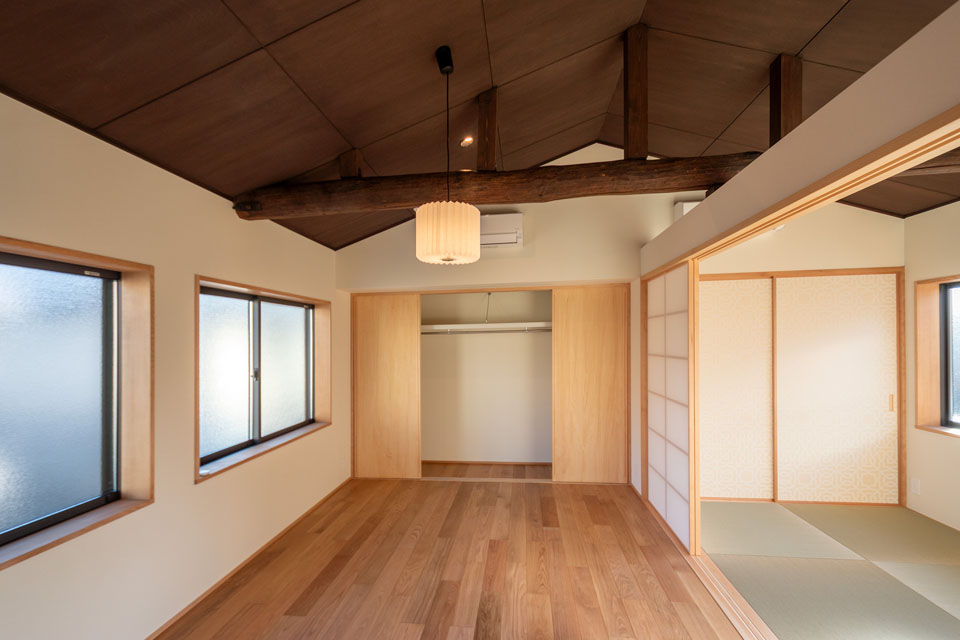 2階には洋室と和室を配置し、寝室や書斎など、暮らしに合わせて柔軟に使える間取りとしています。