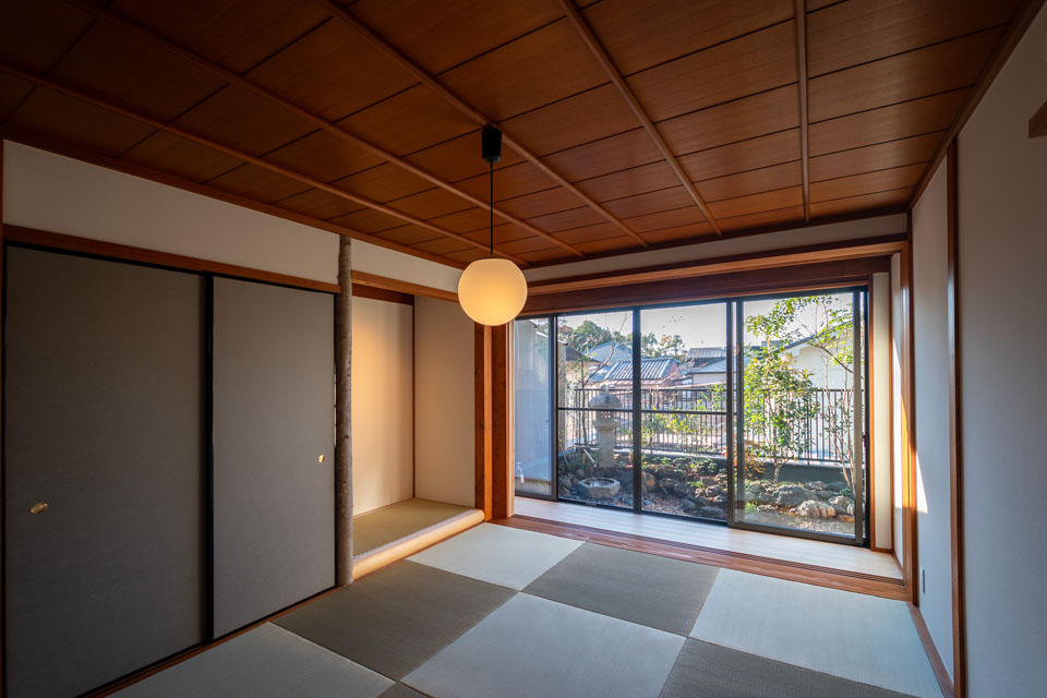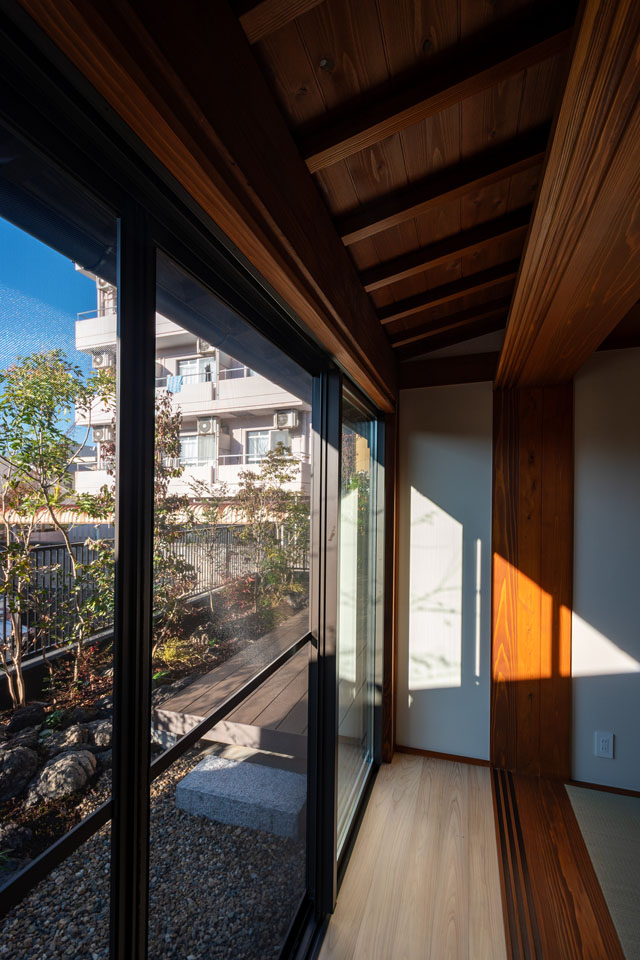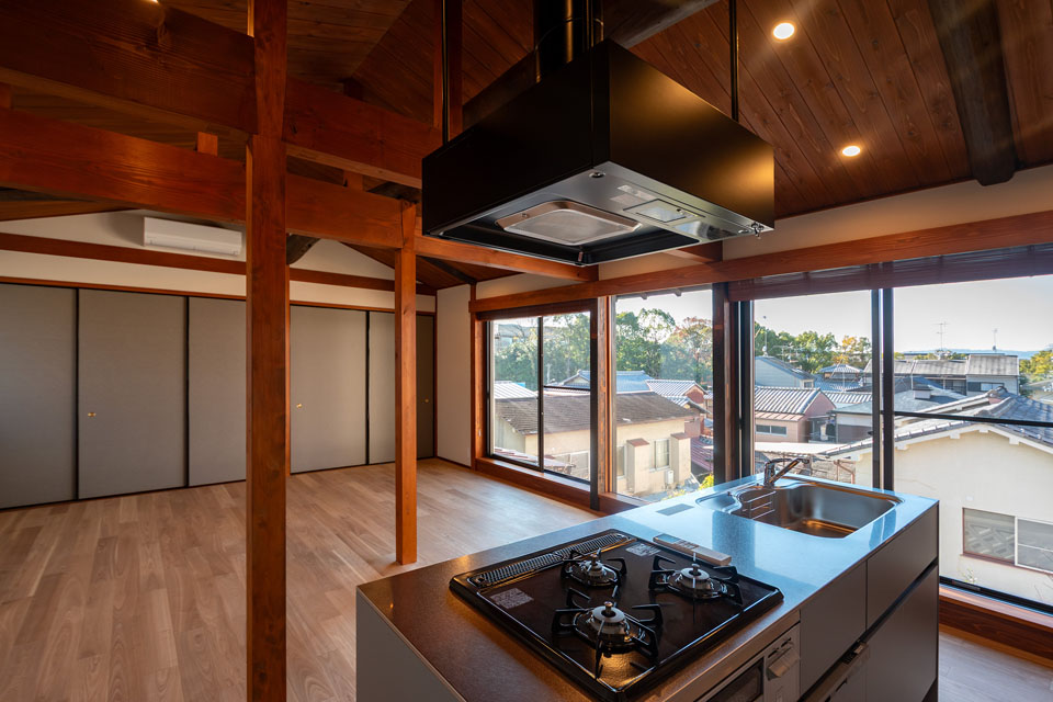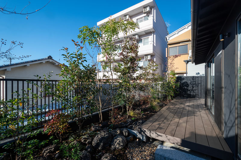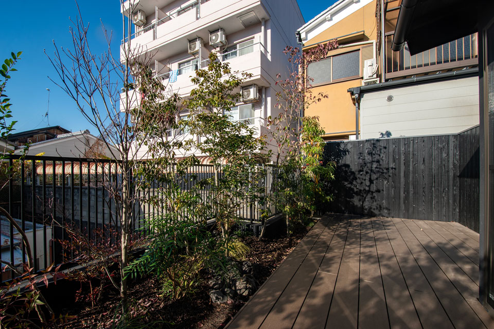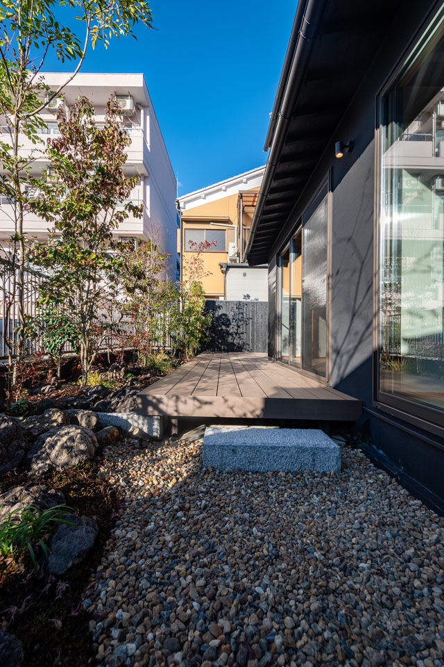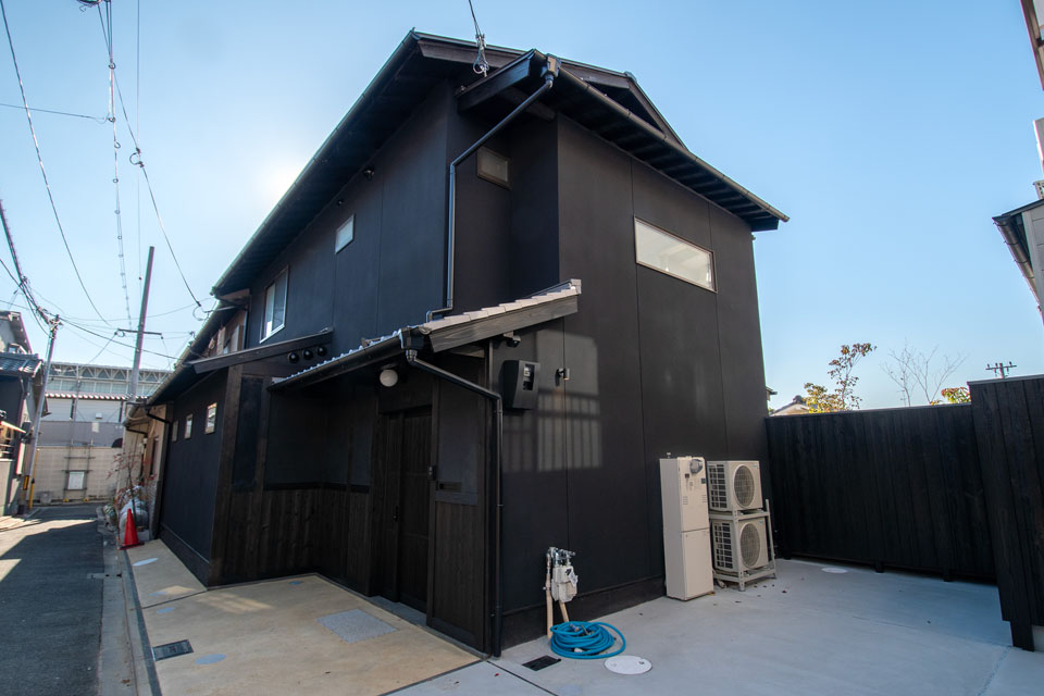 歴史ある街並みに溶け込む、モダンな黒壁が印象的な京町家。高台に位置し、西側の景色が抜けており各部屋日当たりと風通しが良好です。四季折々の自然を感じながら、ゆったりとした時間を過ごせます。