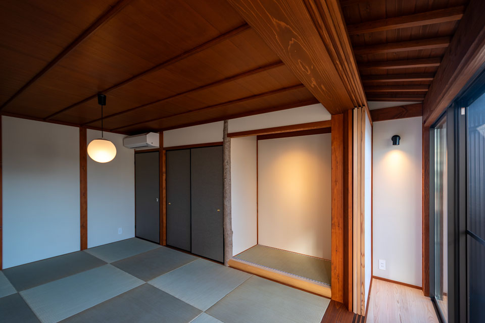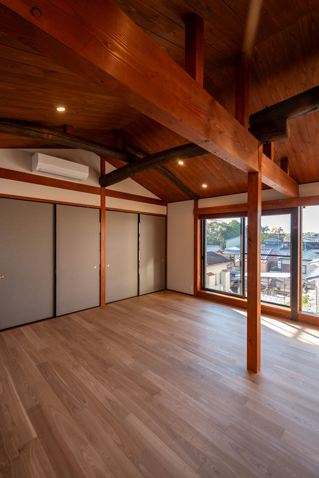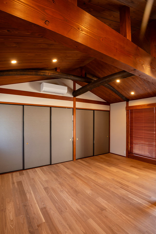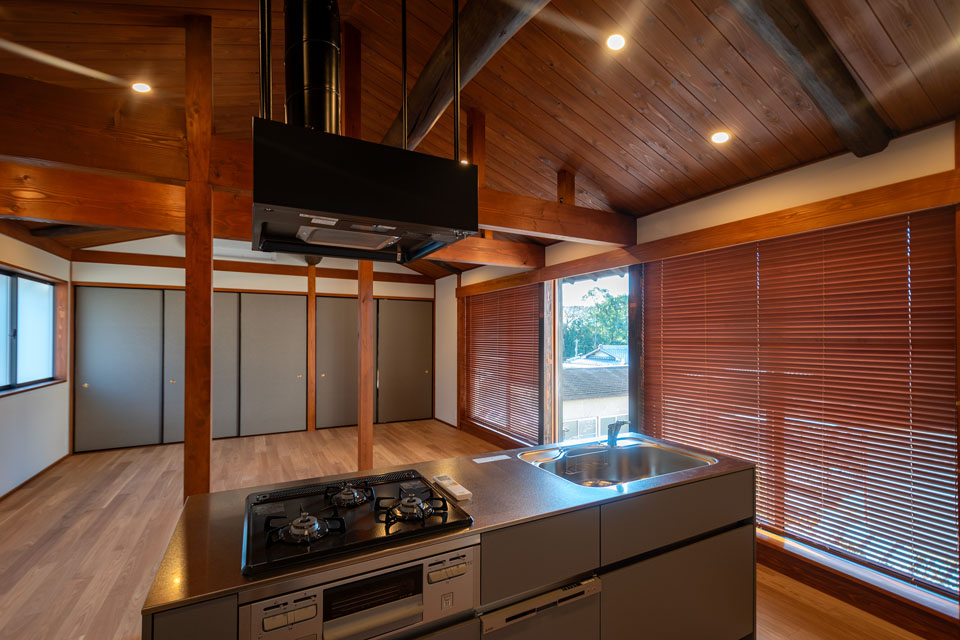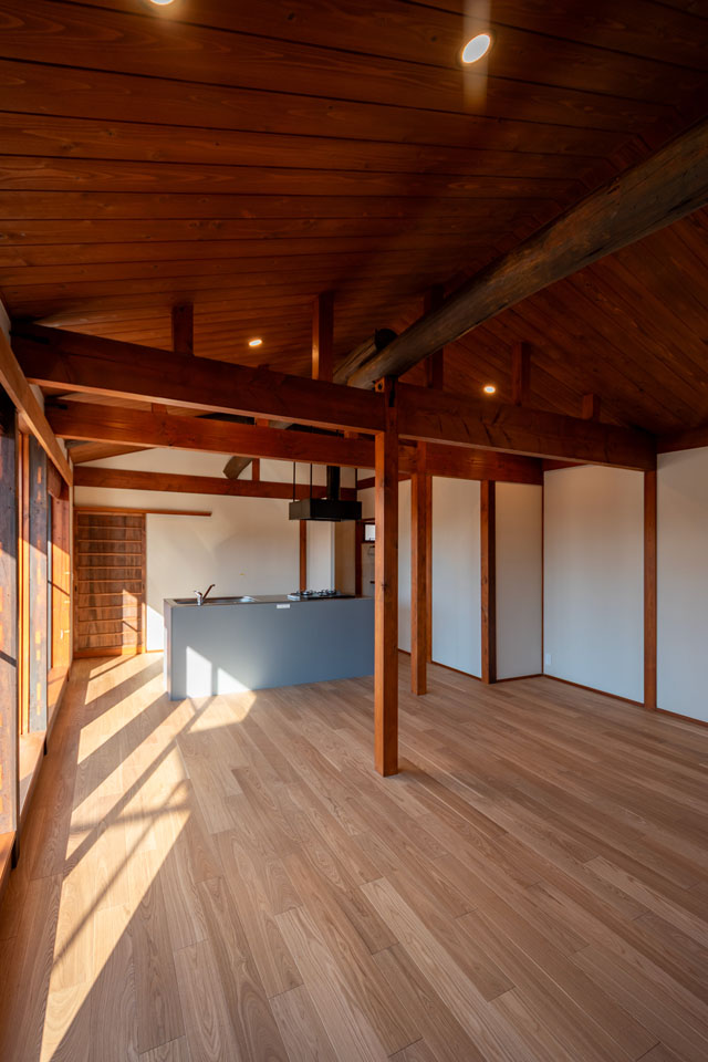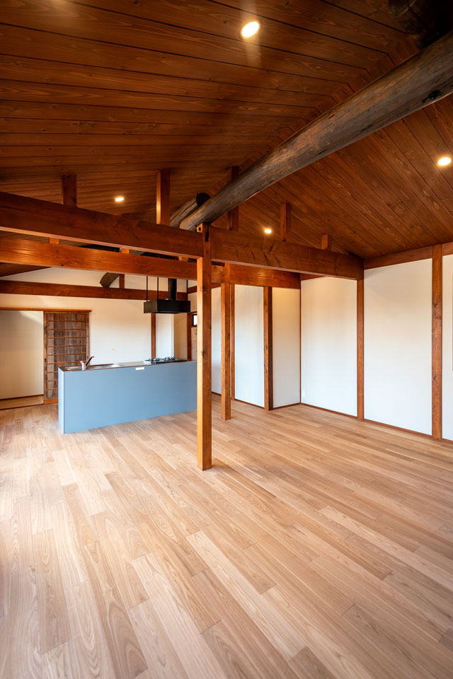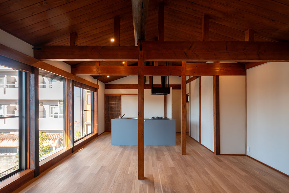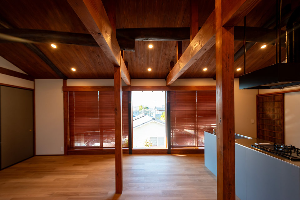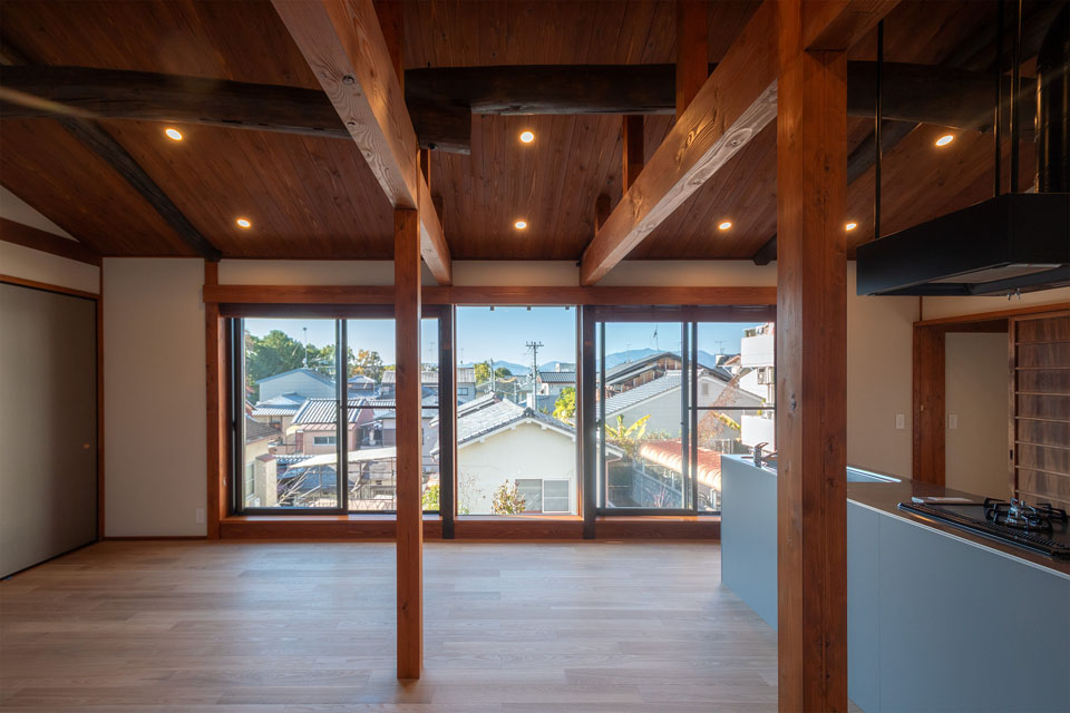 リビングは古い梁や柱を利用した勾配天井が、空間に広がりと奥行きを生み、厳選された素材が時を重ねた味わいを引き立てます。現代の快適さを取り入れ2025年12月に全改装済の京町家。観光地へのアクセスも良好で、セカンドハウスや移住先にもご検討いただけます。