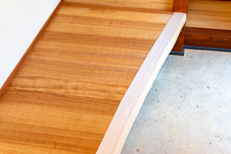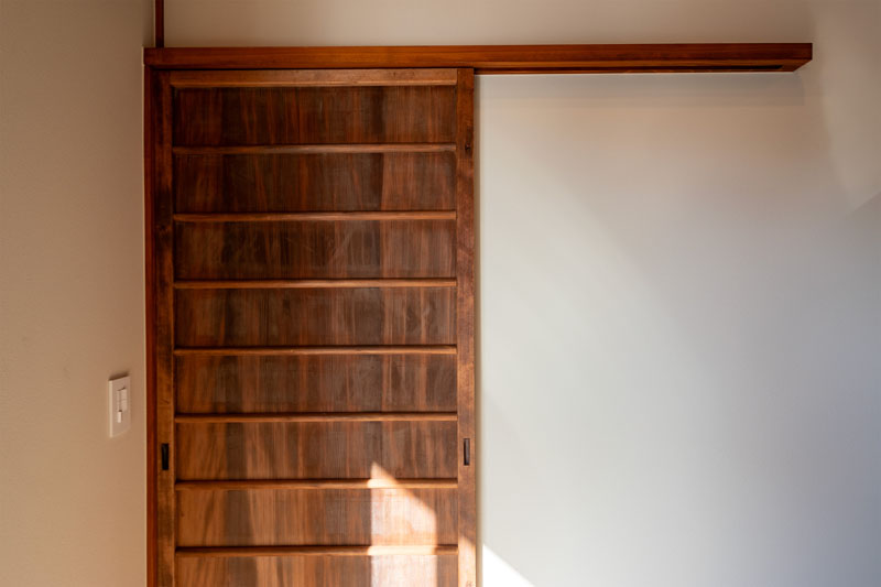 間取りはゆとりある2LDK。各部屋に収納を完備し、全室床暖房付きで冬も快適に過ごせます。洋室には造作のデスクがあり、リモートワークにも最適です。ウッドデッキと庭が広がる1階は、四季の自然を身近に感じられる癒しの空間。