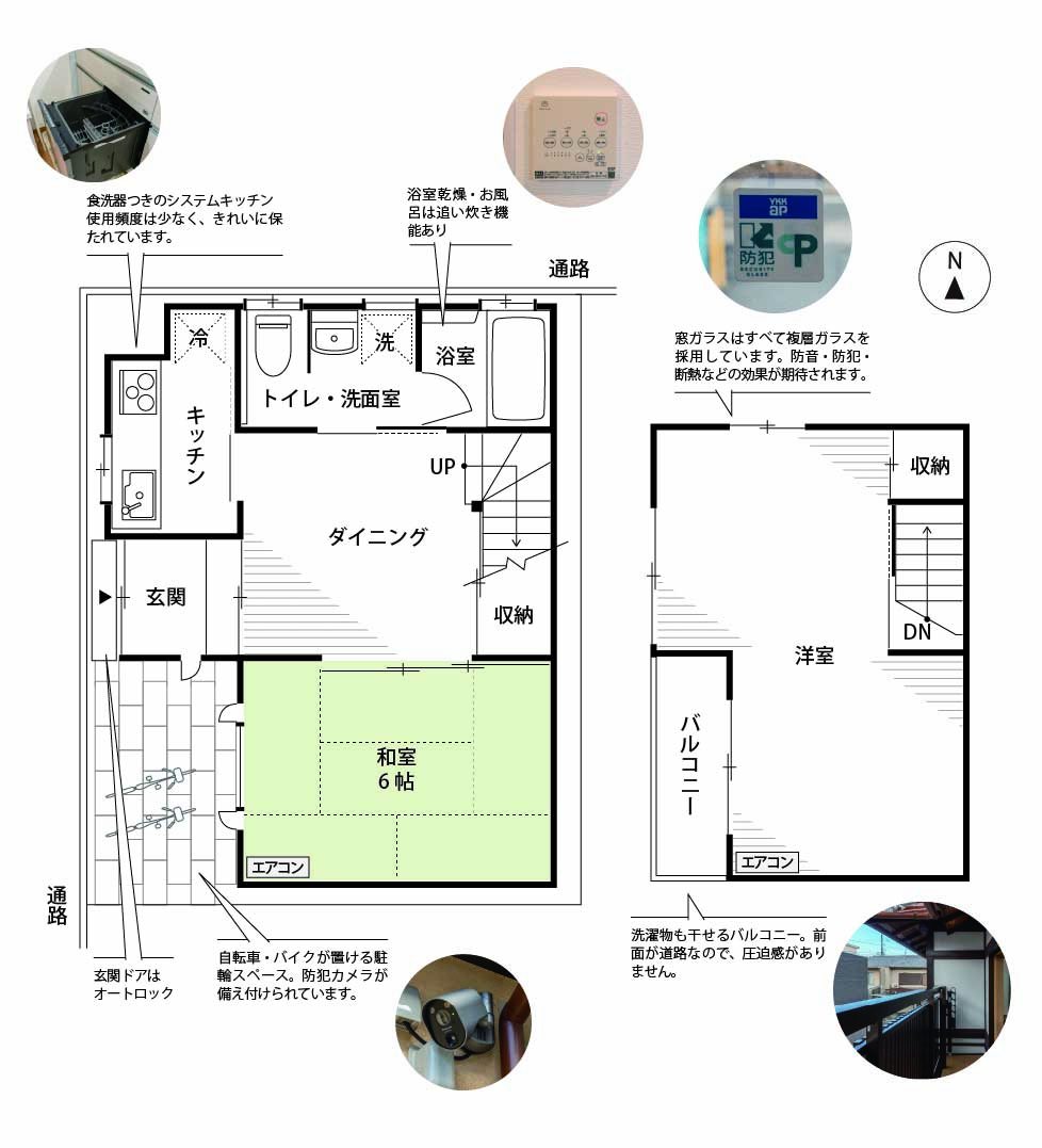 玄関ドアのオートロック・人感センサー自動照明・浴室乾燥など快適に暮らせる機器を備えています。