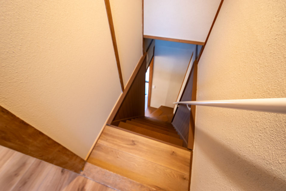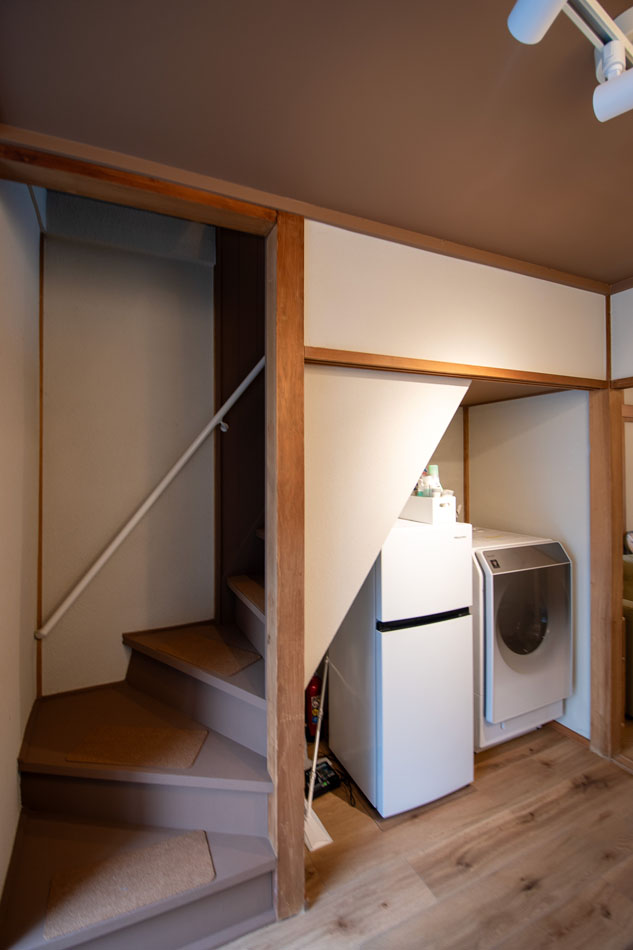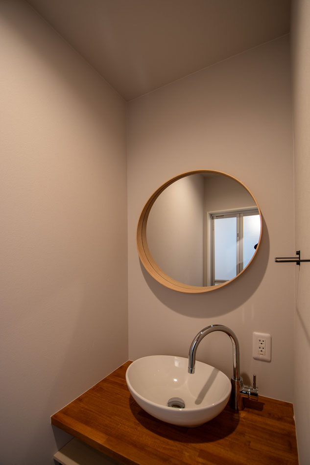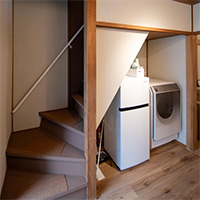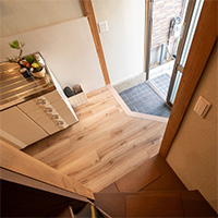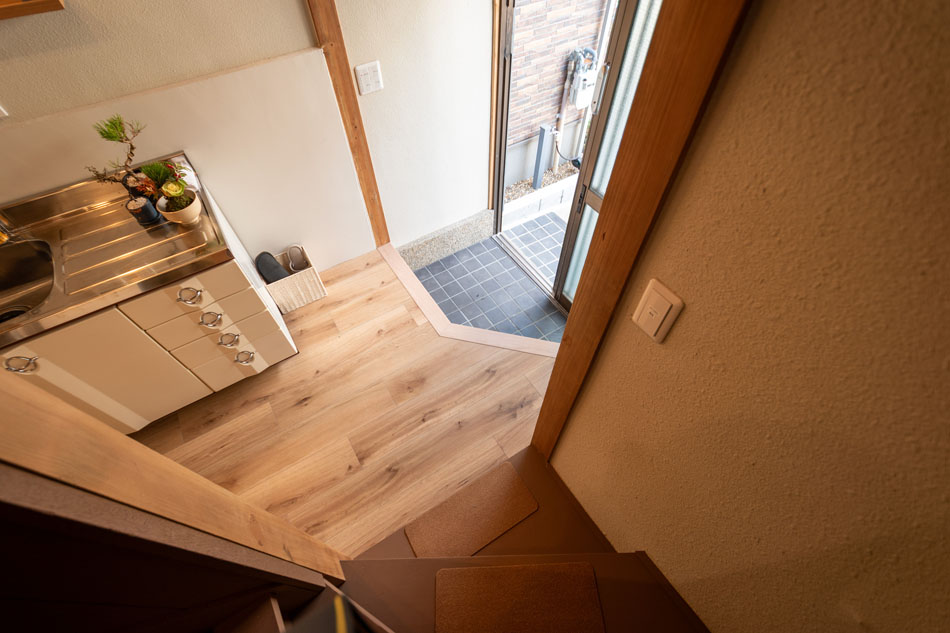 1階は玄関からキッチン、洋室と水回りへの動線がまとまった間取です。浴室・洗面脱衣室はお庭に面しており明るいです。