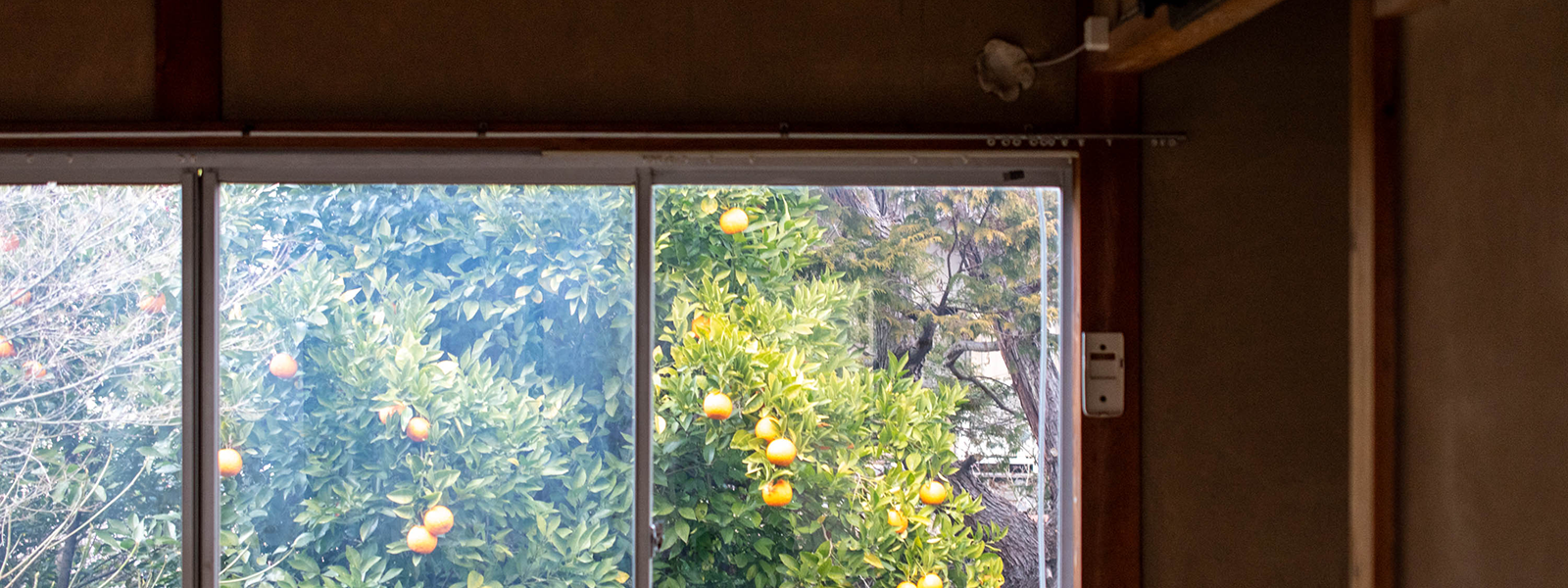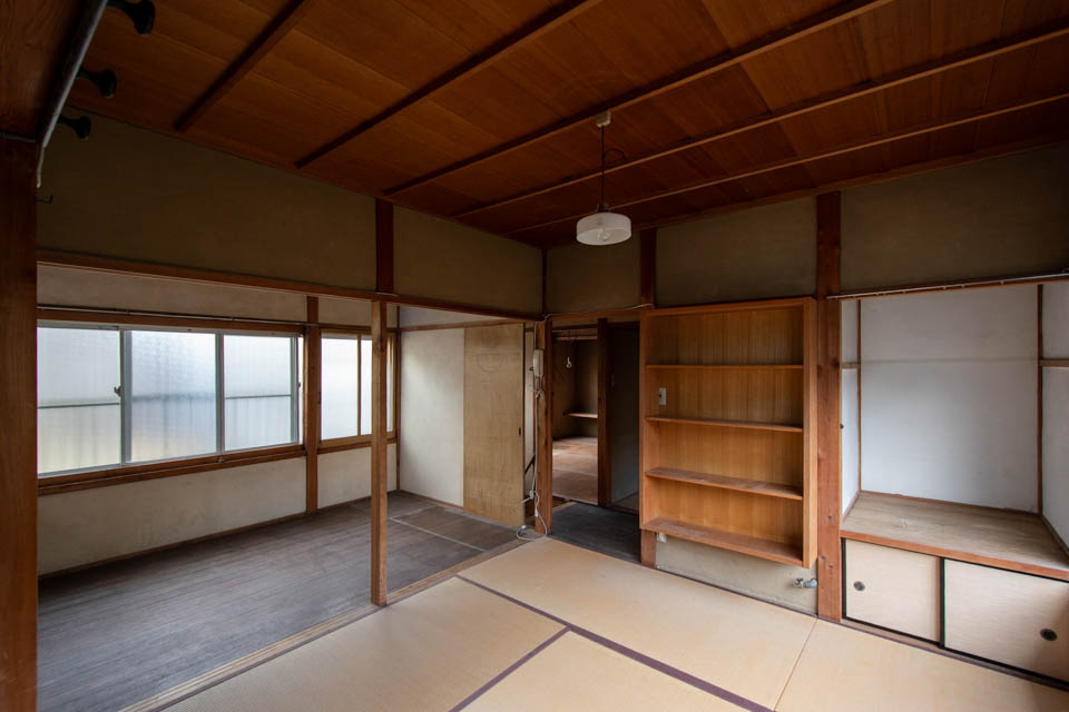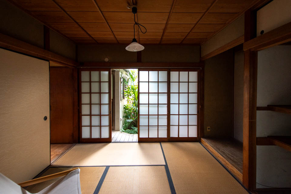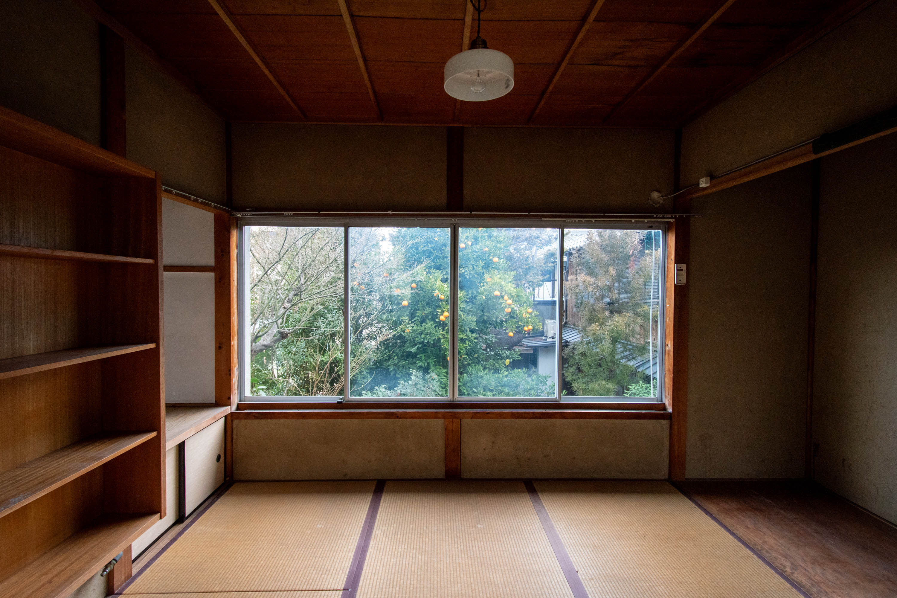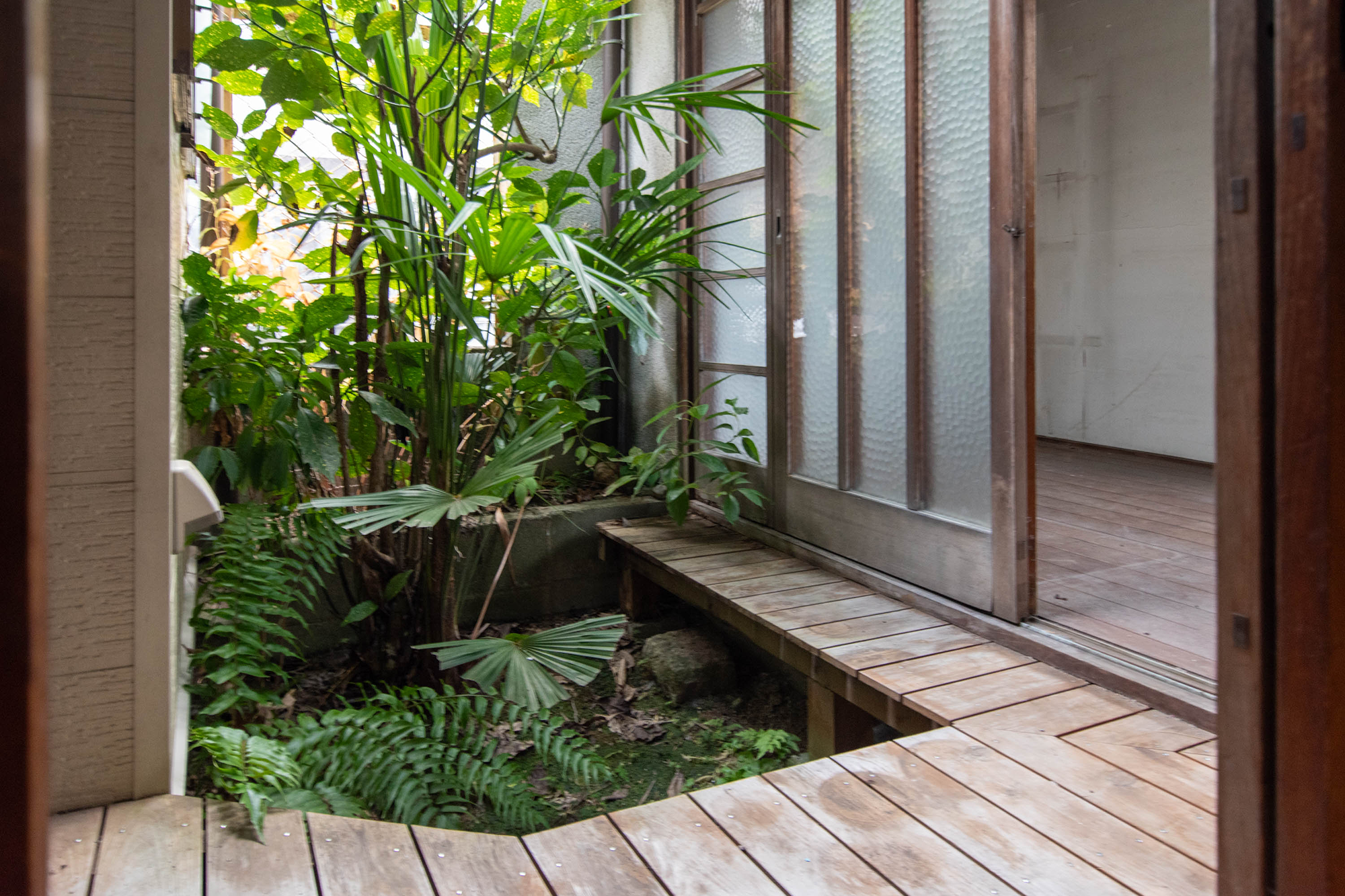 路地奥にありながら比較的明るさを感じられる間取りで、小さな縁側と庭が日常にやさしい余白を添えます。レトロな台所やガラスの建具が当時の面影を残し、全8部屋と台所で多様な使い方が可能。2階南西の部屋の窓からはお隣のミカンの木が借景となり、季節の移ろいを身近に感じられます。昭和中期の趣を大切にした住まいです。