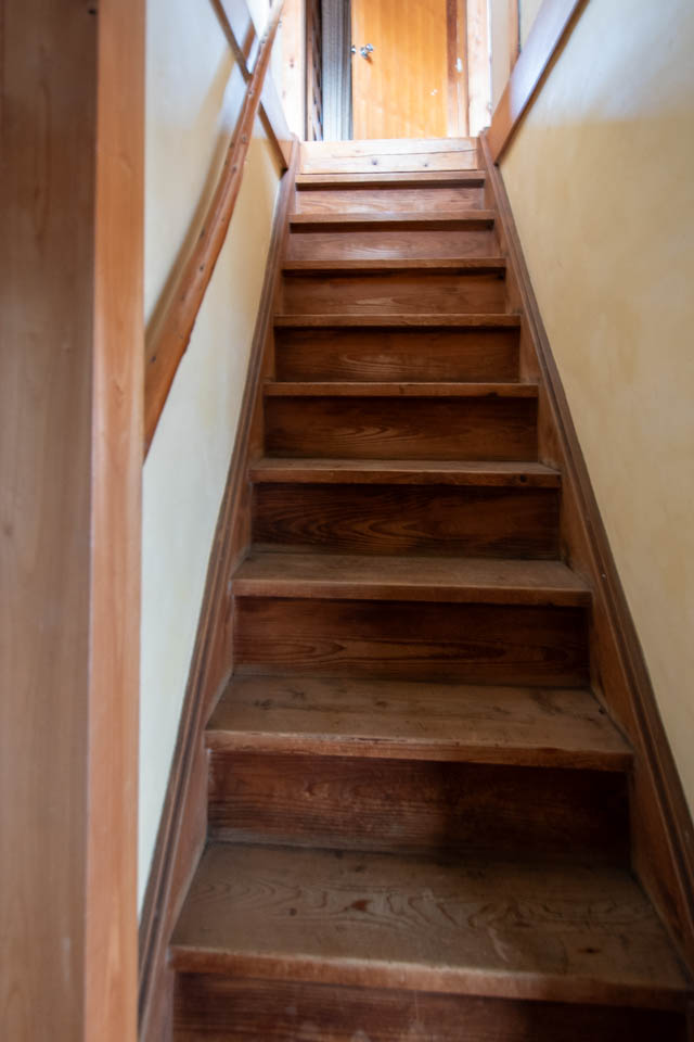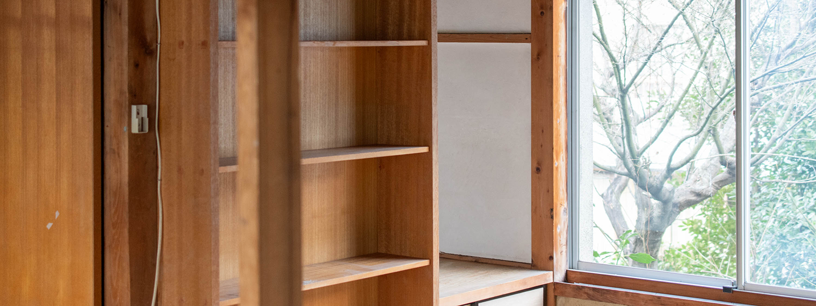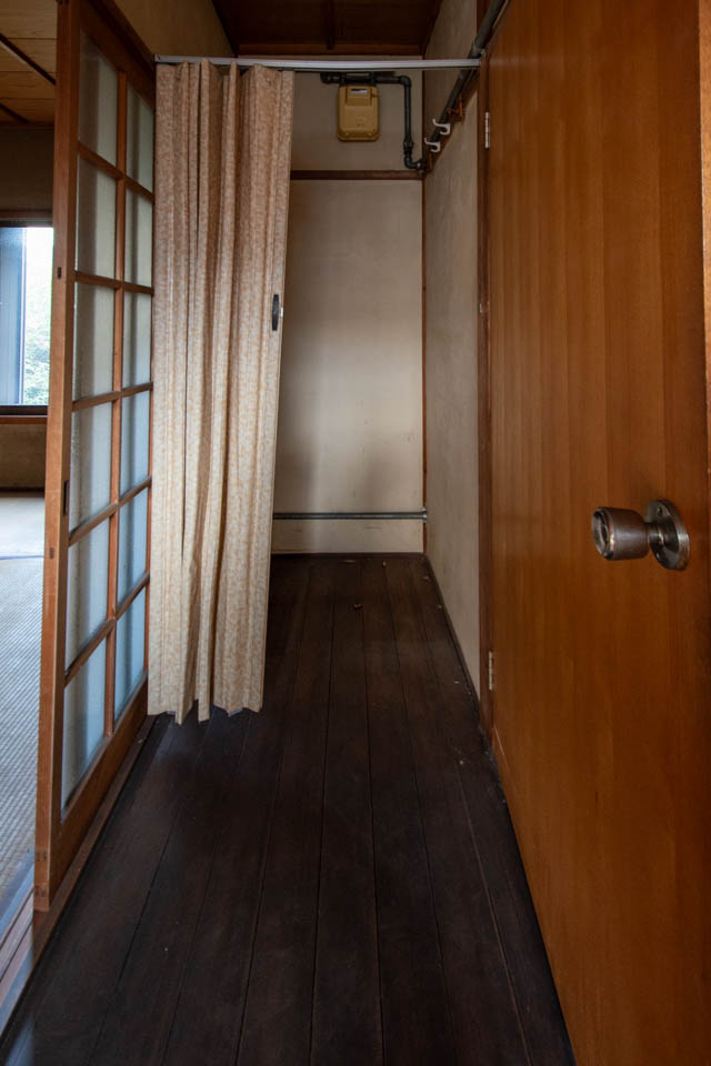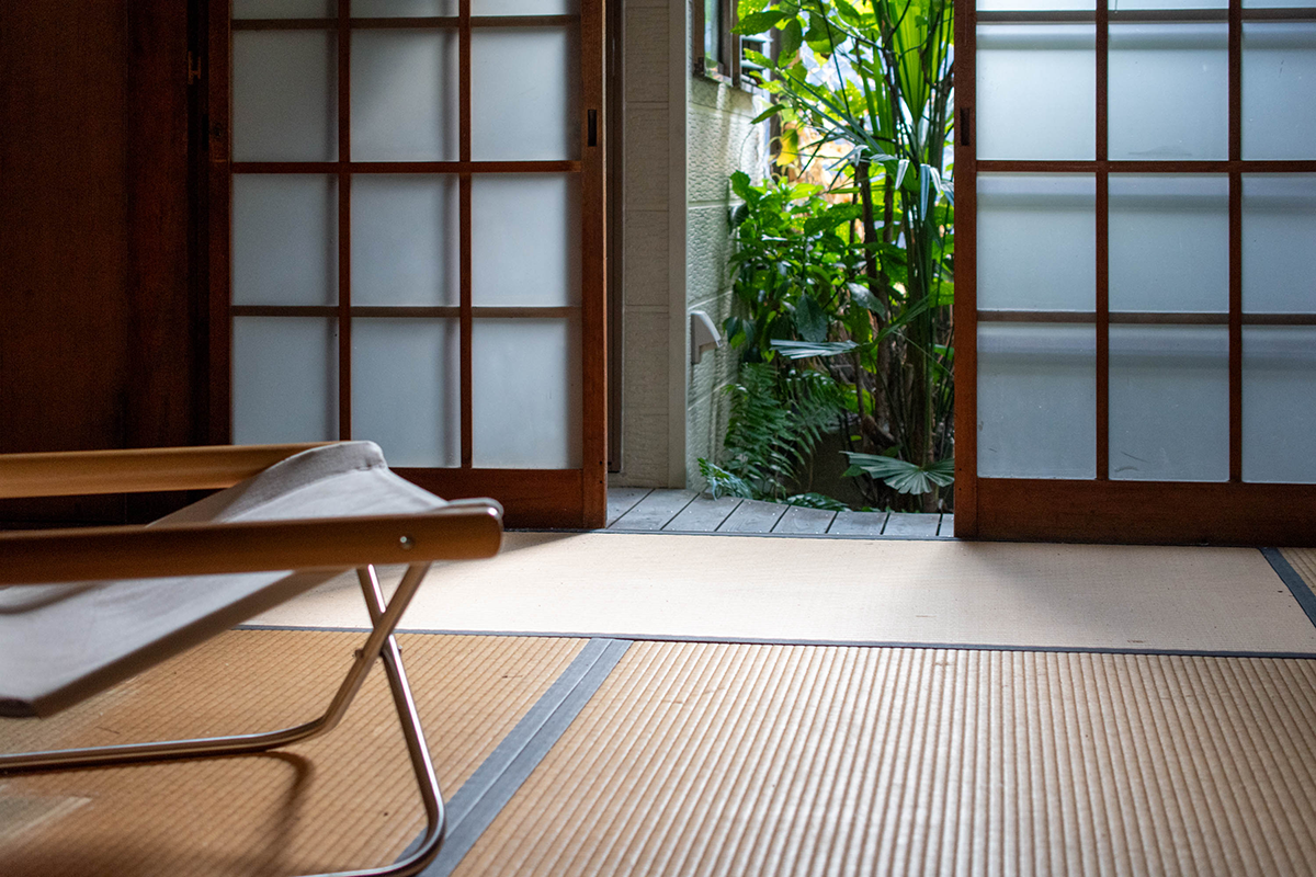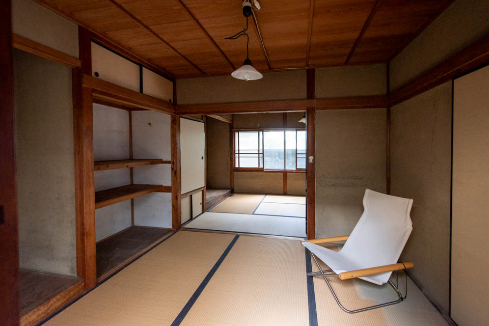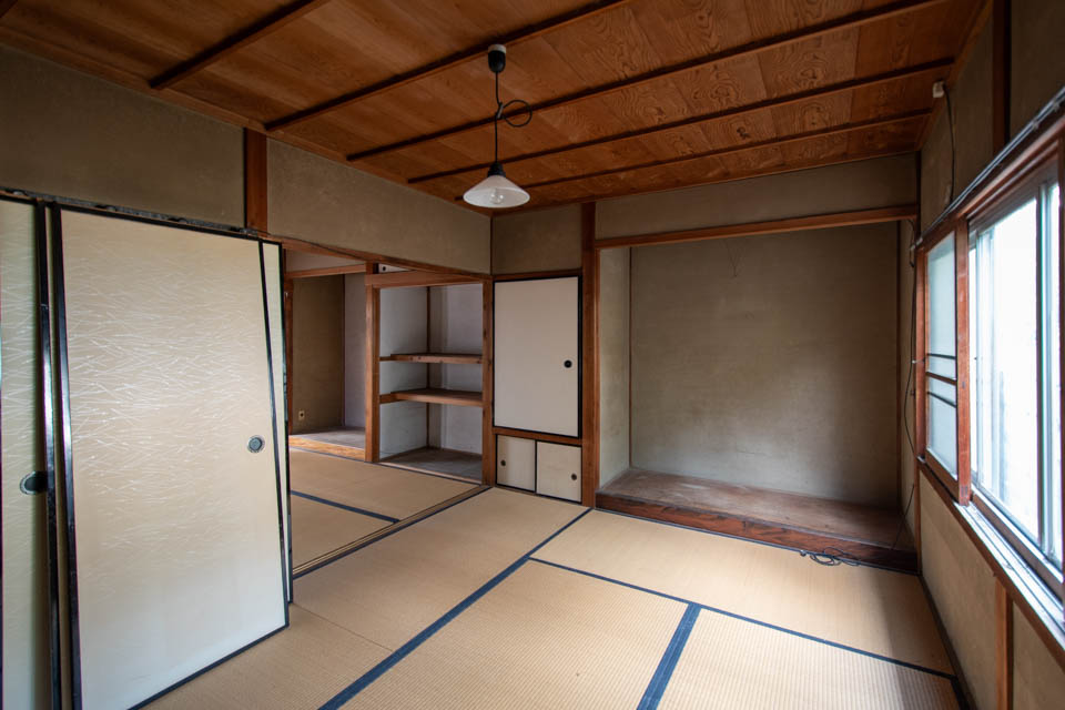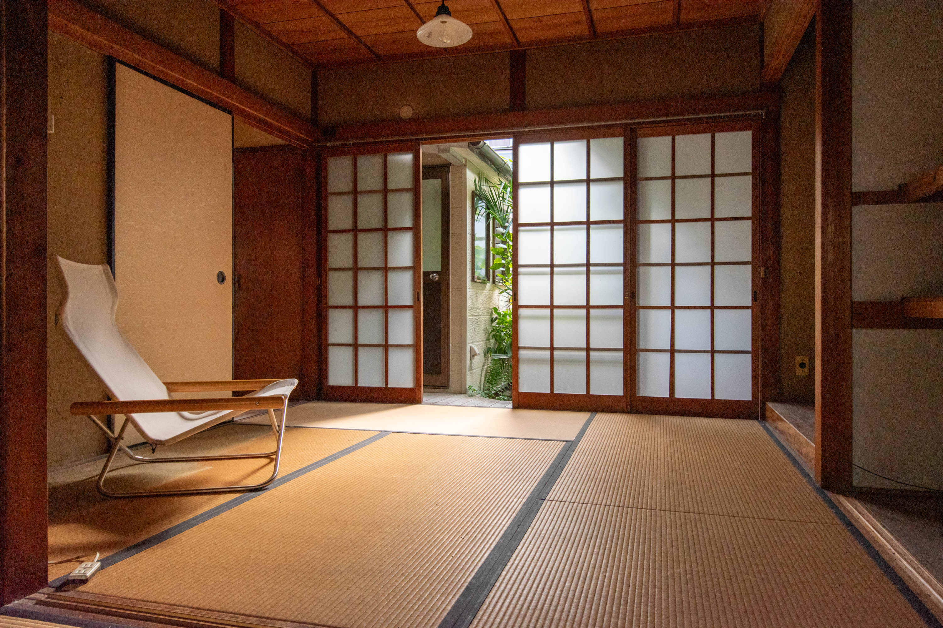 路地奥にありながら比較的明るさを感じられる間取りで、小さな縁側と庭が日常にやさしい余白を添えます。レトロな台所やガラスの建具が当時の面影を残し、全8部屋と台所で多様な使い方が可能。2階南西の部屋の窓からはお隣のミカンの木が借景となり、季節の移ろいを身近に感じられます。昭和中期の趣を大切にした住まいです。