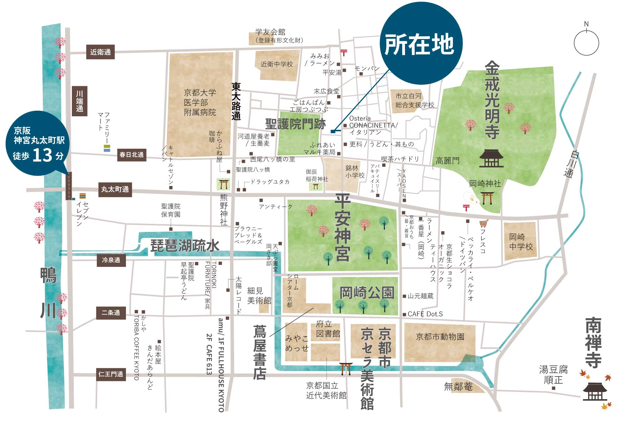 | 京阪鴨東線「神宮丸太町駅」5番出口徒歩約13分 | |