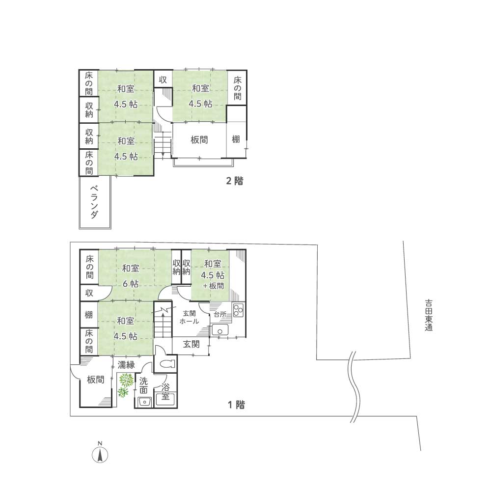 吉田東通に面したプライベート路地。その入口から奥へ奥へと進むと、まるで「ひみつの花園」のように、自分たちだけのひらけた敷地とお家が現れます。建物は昭和34年築の在来住宅で、どこか懐かしくレトロな風情が漂う佇まい。外の喧騒から少し離れた特別な空間で、どんな暮らしを描きますか?想像するほどにワクワクが膨らむ物件です。