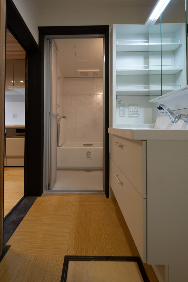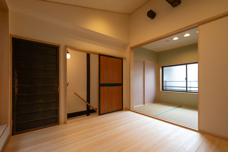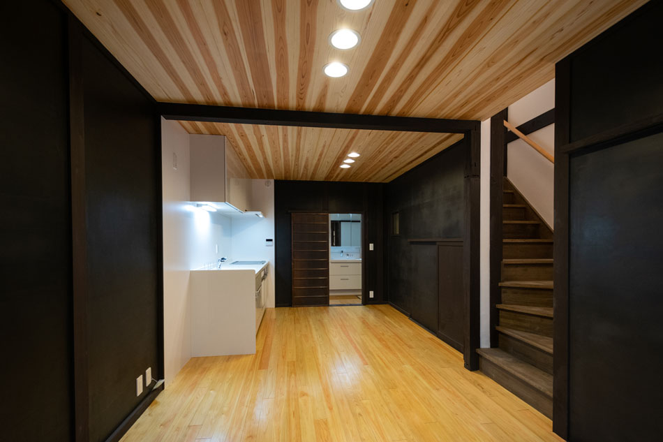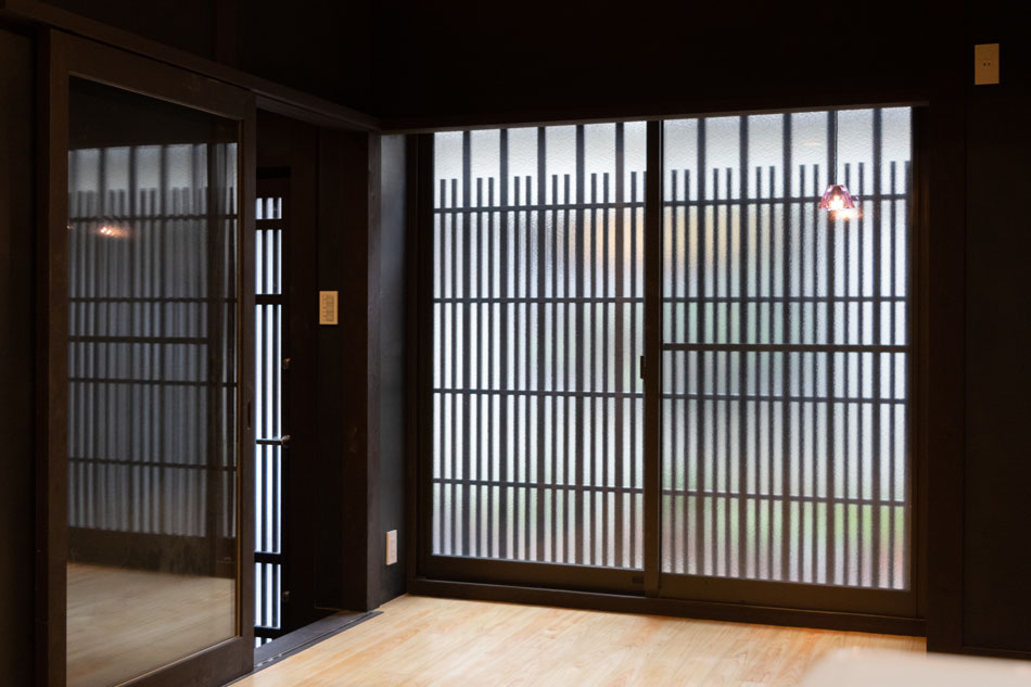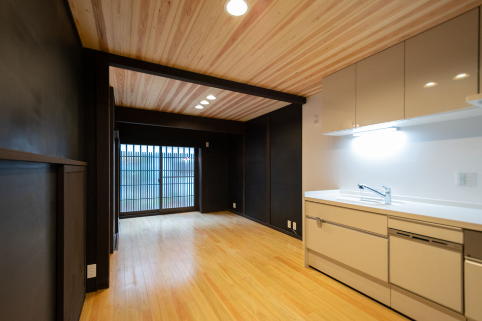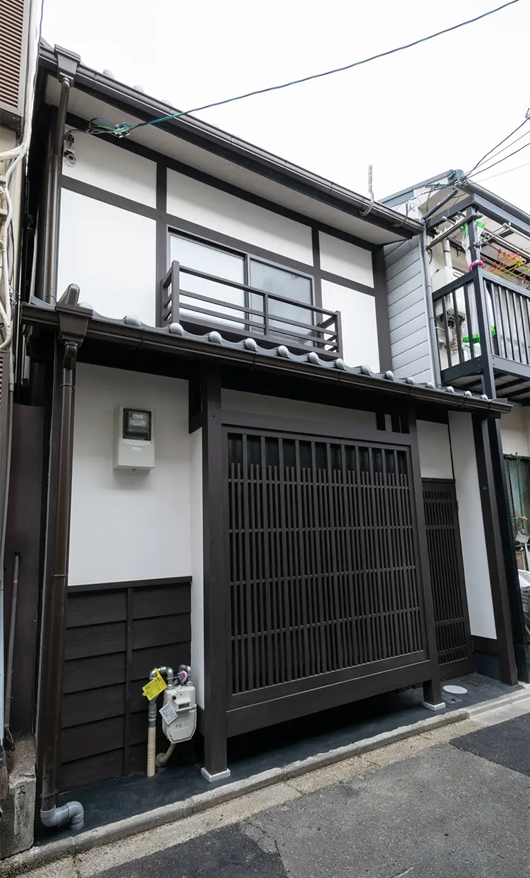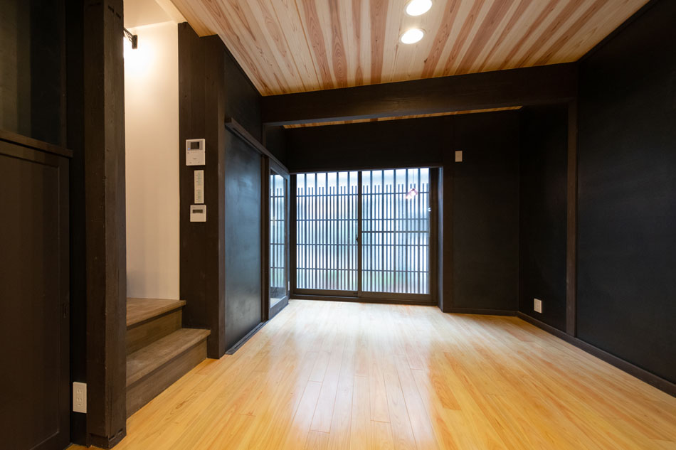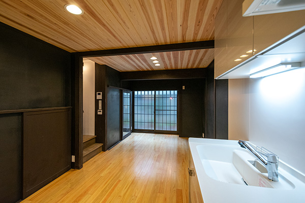 趣のある土間玄関や、美しい陰影を生み出す格子窓、空間にアクセントを添える現し梁など、町家らしい奥ゆかしさを残しながらも、モダンに改装された心地よい住まいです。