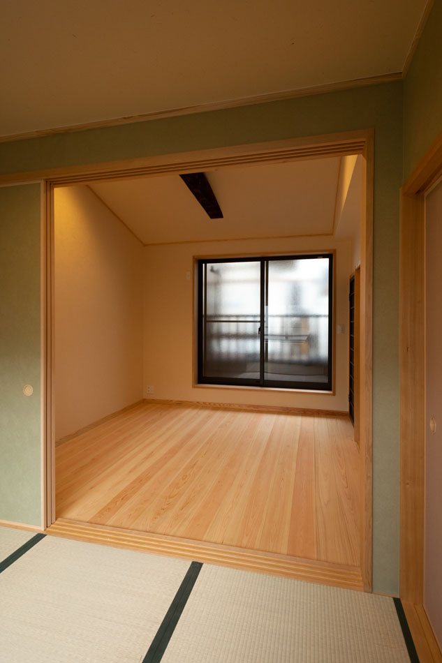 一階にはリビングと水まわりを、二階には寝室に加え、書斎としても、くつろぎのスペースとしても使える畳の間をご用意。