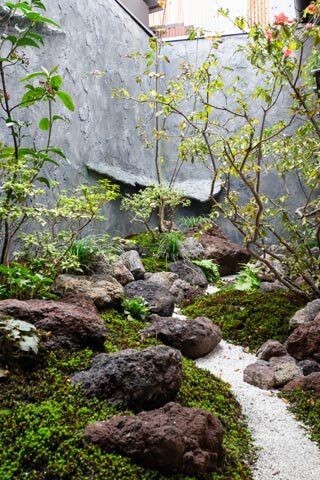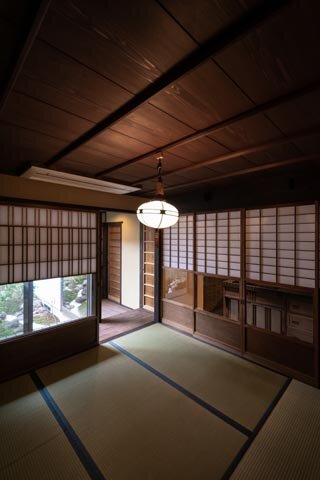 ダイニングをへだてた『奥座敷』では、枕をそばだてて鐘の音を聞き、雪見障子を掲げて趣のある坪庭を眺めることができます。