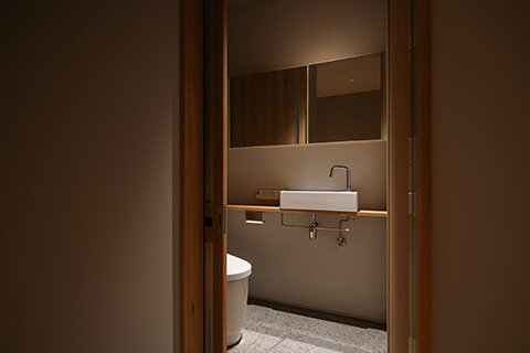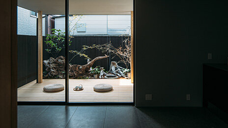 豊臣秀吉の壮大なロマンを感じさせる城「聚楽第」跡。その周辺には大名屋敷の碑が点在し、邸宅跡地の歴史を今に伝えています。石畳のアプローチと巨石の庭園が織りなすこの静謐な隠れ家は、歴史薫る立地から着想を得た現代の邸宅「Re:sidence」。シンプルな室内から眺める自然美が、日々の暮らしに物語を添えます。