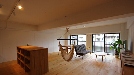 コンクリートの状態まで一度解体されたスケルトン・リノベーションマンション。間仕切りのない自由度の高い住まいをゼロから再設計しました。