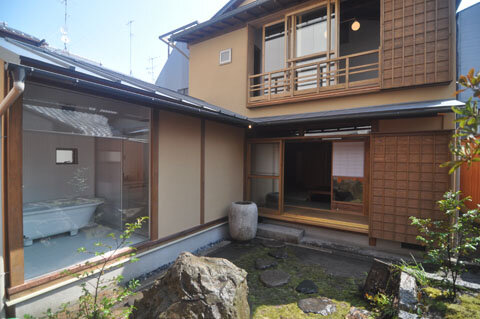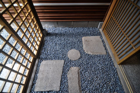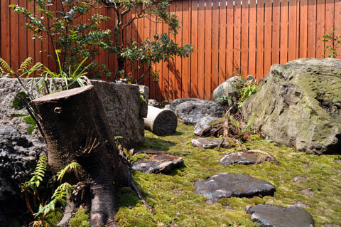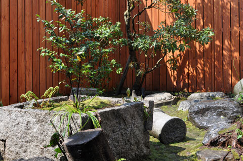 住所(北区紫竹)の「紫」、む四季折々の庭を「翠」、茶室を表す「庵」から「紫翠庵」と名付けられた、リノベーション住宅。庭は廃墟庭園。