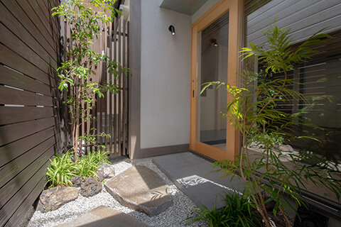 今出川通から北へ入った通り沿い、西陣の町に静かに佇む、リノベーション京町家です。