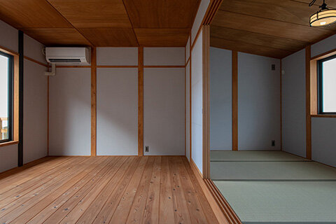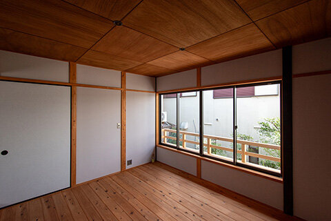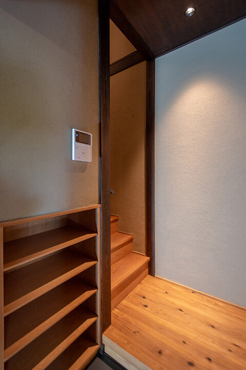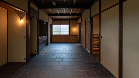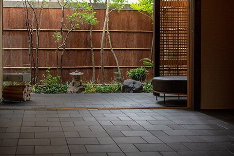 玄関から庭まで、瓦タイルが空間をひとつにつなぎ、すべてが“縁側”のような場に。内と外の境界がゆるやかに溶け合い、人と人の縁が自然に育まれる住まいです。