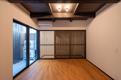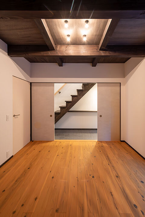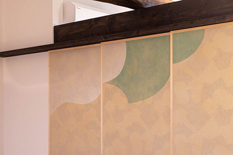 その中でも“唐紙襖”は、版木による手摺りや文様の表現など、伝統技法を用いて仕上げられる特別なもの。紙そのものに意匠が宿り、住まいに静かな華と上質さを添えます。本物件では、1階と2階に異なる図案の唐紙襖を設え、空間や時間の移ろいを愉しめるしつらえとしました。