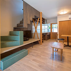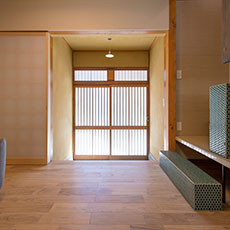 古き良きモノは、そのまま活かしながらも、玄関の踏み台や階段に緑のタイルを使用するなど、モダンな雰囲気を演出しました。