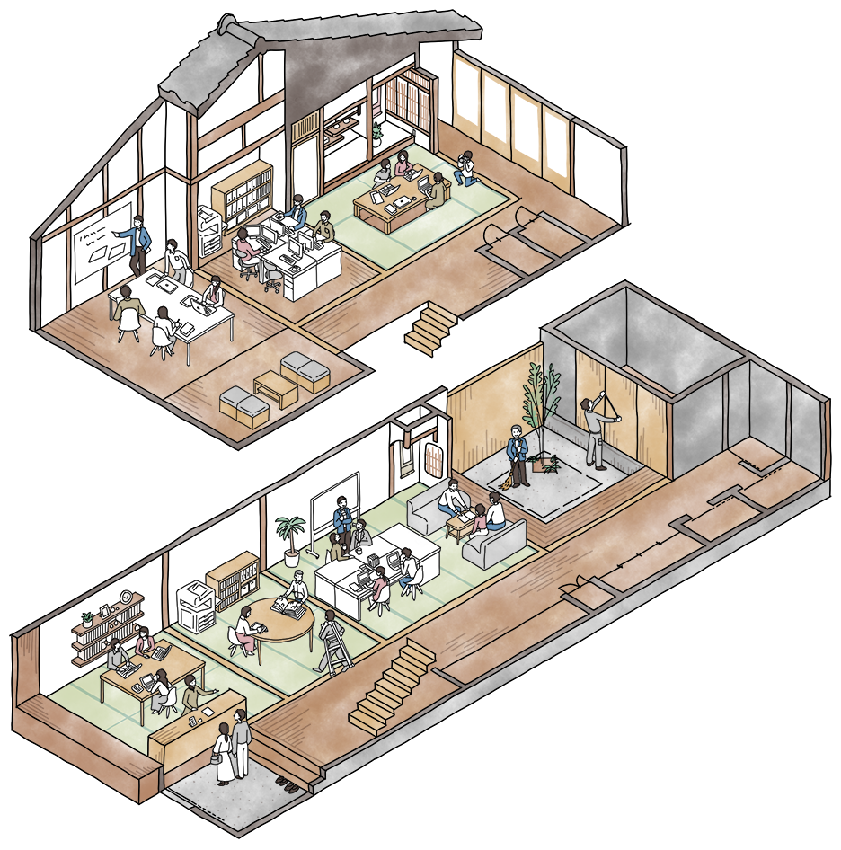 販売物件の構造設計、施工管理・検査をはじめ、アフターメンテナンスや修理・請負工事を担当しています。また、社内の建築レベルの標準化と、技術的向上にむけ建築に関する研究や技術開発、新規企画も行います。町家や古民家など古い建物修繕のプロフェッショナル集団として、建築の知識はもちろん、管理能力やコミュニケーション能力を要し、八清の「安心・安全・快適」な商品づくりを担う部署です。