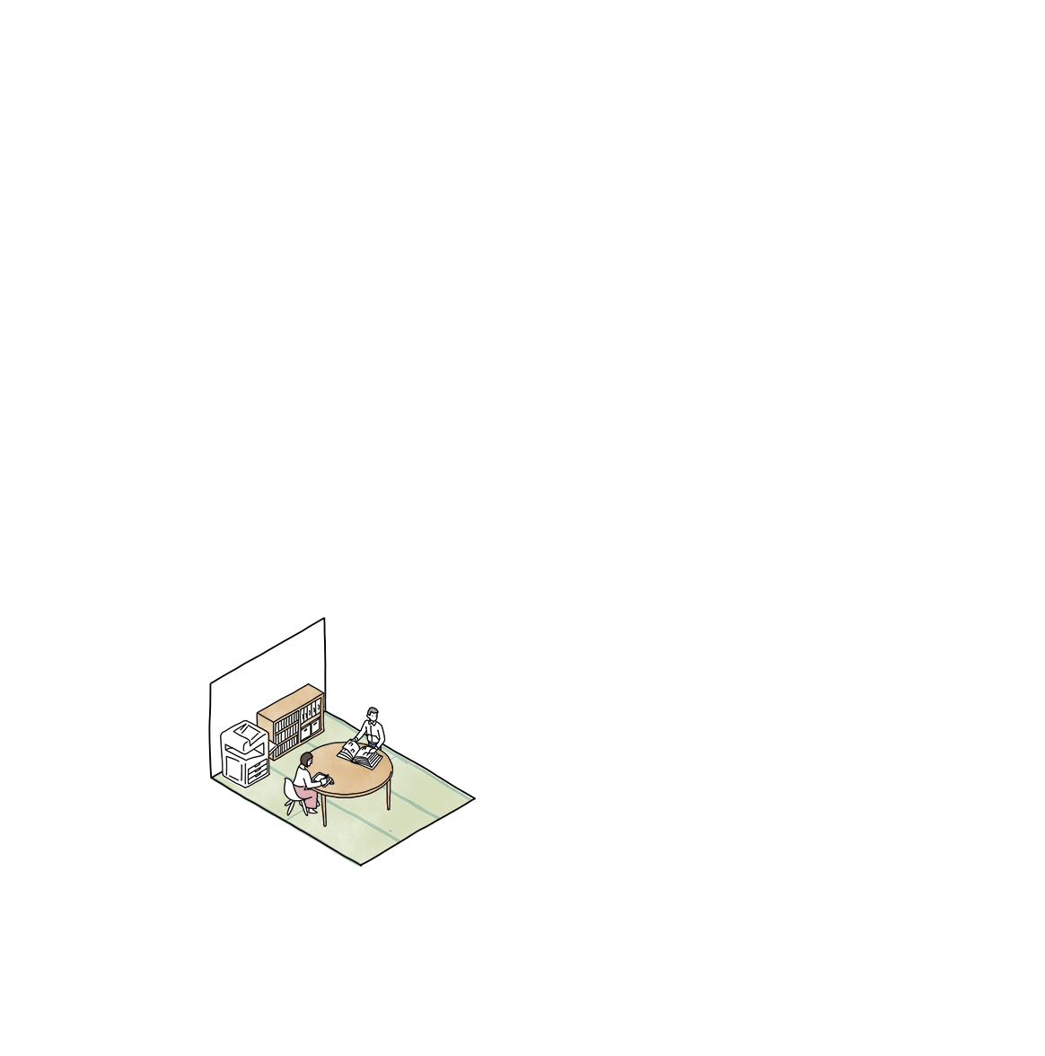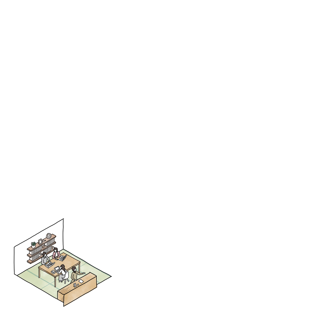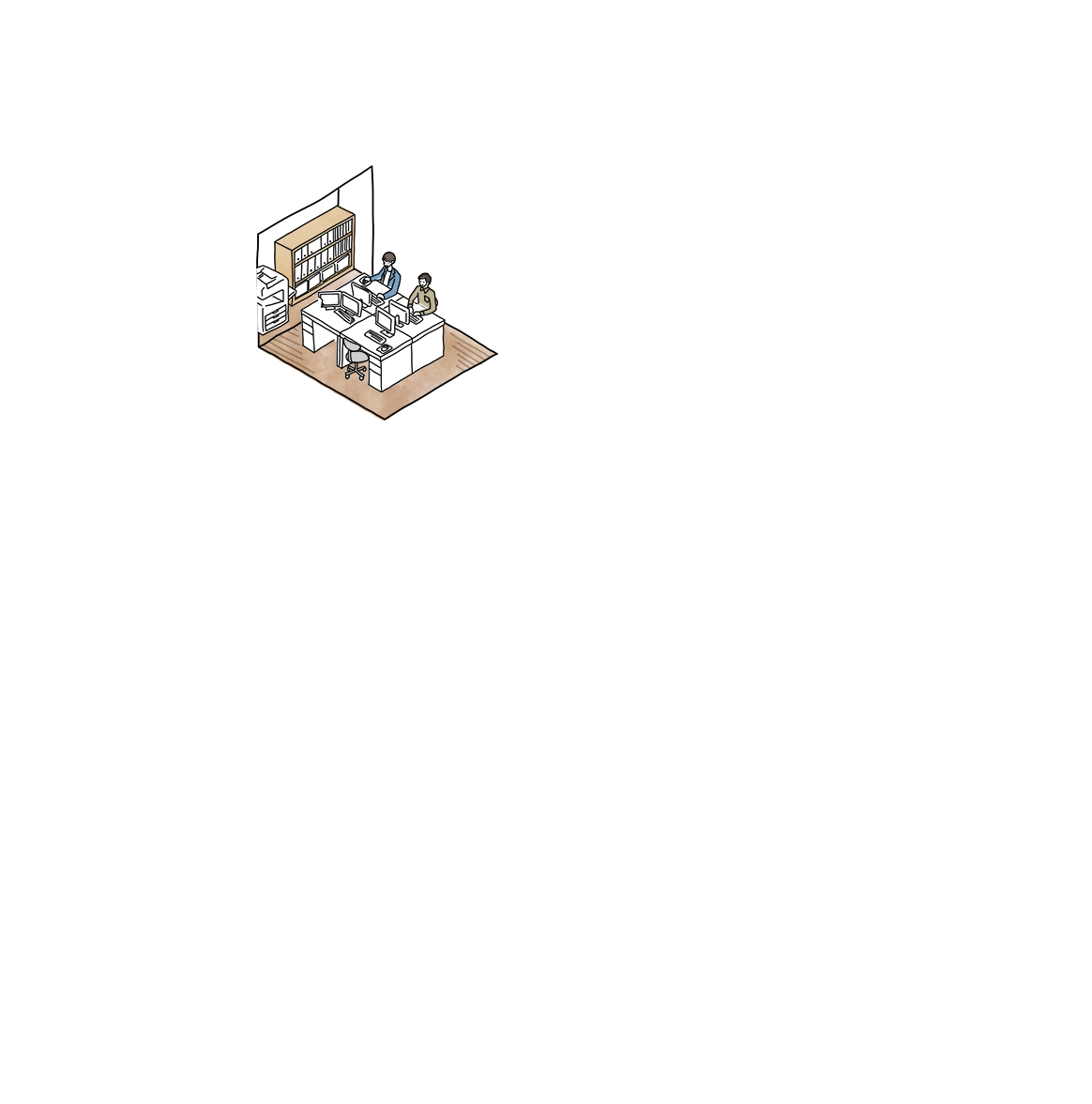 会社運営の中枢を担う部門として、経営方針や戦略を基に経営管理と経営企画の立案・実行を行います。財務、経理、法務、人事、総務、受付・営業支援も含む会社全体を軸に様々な業務を支えるバックオフィスの精鋭集団です。受付業務とともに、営業部門の附帯業務である重要事項説明書などの法的書類の作成、書類・データ・備品管理などの営業事務も担い、会社の顔でありながら裏方も務めています。