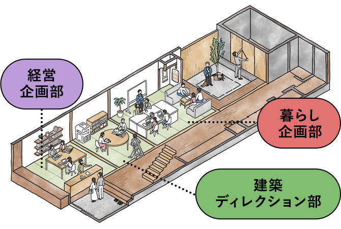 暮らし企画部の担当者と建築ディレクション部の担当者、