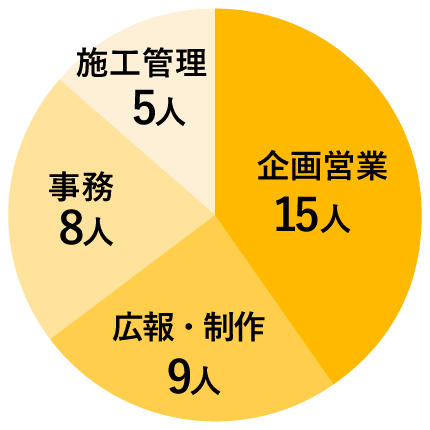 9人 各部署の英語、中国語などでお客様に対応できる社員で構成されています。